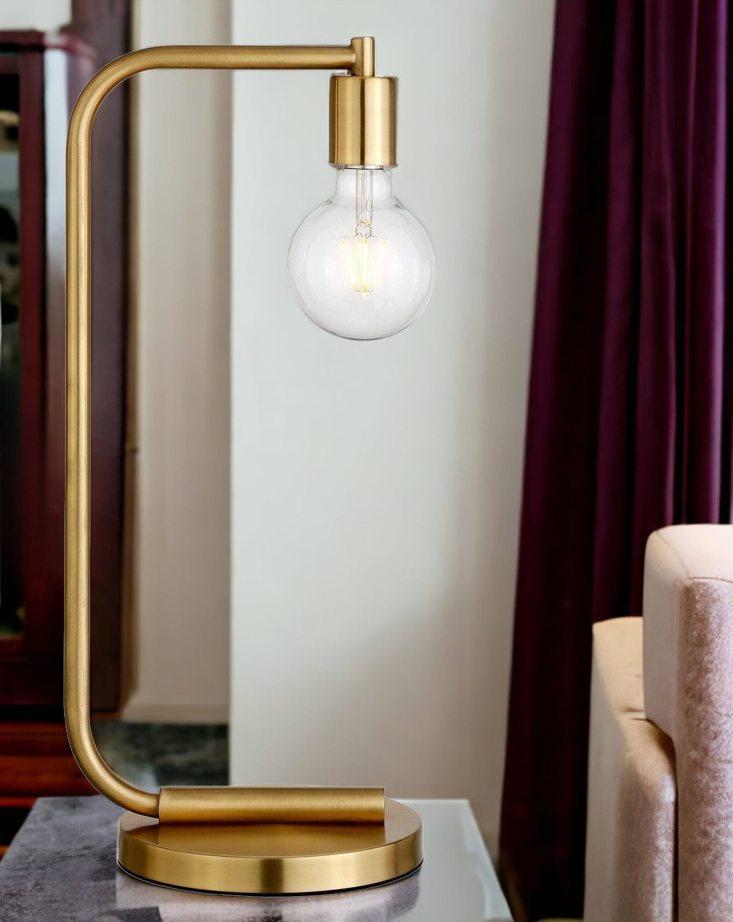 Bring of level of elegance and freshness to your space with this high quality 20-inch brass metal desk table lamp. The base of this lamp is made of metal finished in a brass tone. This desk lamp provides 'task lighting' that will illuminate your working area for reading or writing. High quality design makes this a great lamp for not only lighting, but accenting a room with style. It is perfect for virtually any decor. 20-inch H x 9-inch W x 7-inch D