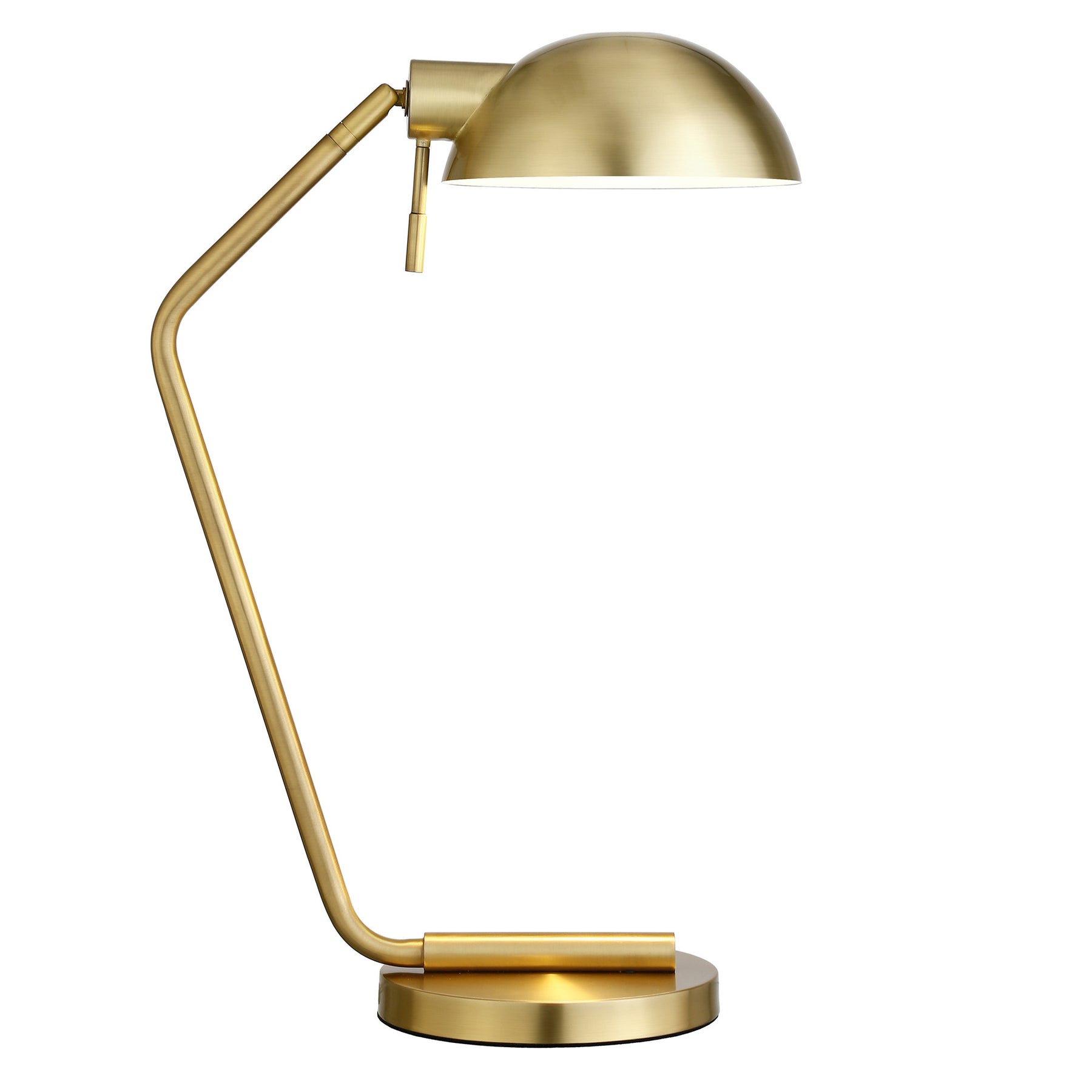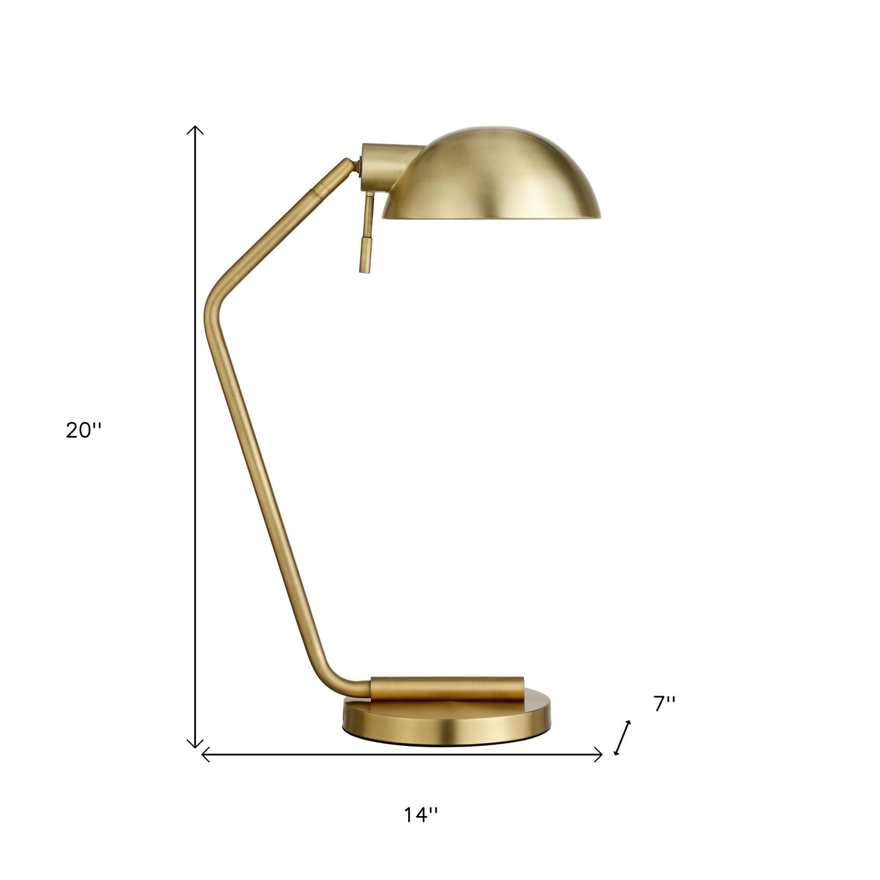 Bring of level of elegance and freshness to your space with this high quality 20-inch brass metal desk table lamp with brass dome shade. The base of this lamp is made of metal finished in a brass tone. The brass shade has a dome shape and is made from metal. This desk lamp provides 'task lighting' that will illuminate your working area for reading or writing. Use this lamp anywhere and elevate the look of the whole space. The perfect lamp to create just the right natural and soothing light in your space. 20-inch H x 14-inch W x 7-inch D