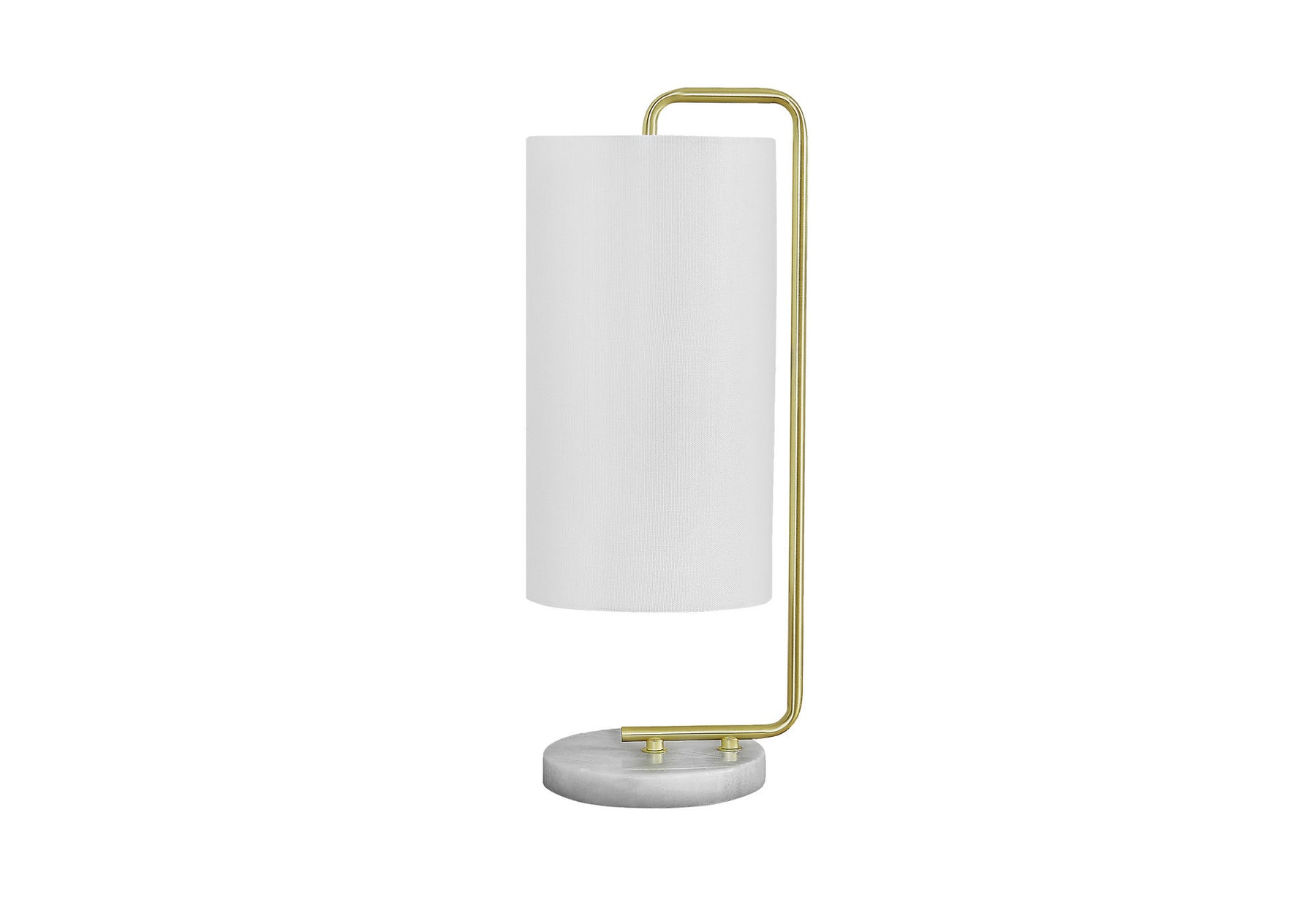 Add a bright anchor to your room with this 20-inch gold and white marble round arched table lamp with ivory drum shade. The base of this lamp is made of white marble with a gold body. The ivory drum linen shade is a great compliment to this lamp. A sophisticated take on a classic, this arched table lamp is a great option for a unique look. High quality design makes this a great lamp for not only lighting, but accenting a room with style. The perfect lamp to create just the right natural and soothing light in your space. 20-inch H x 8-inch W x 8-inch D