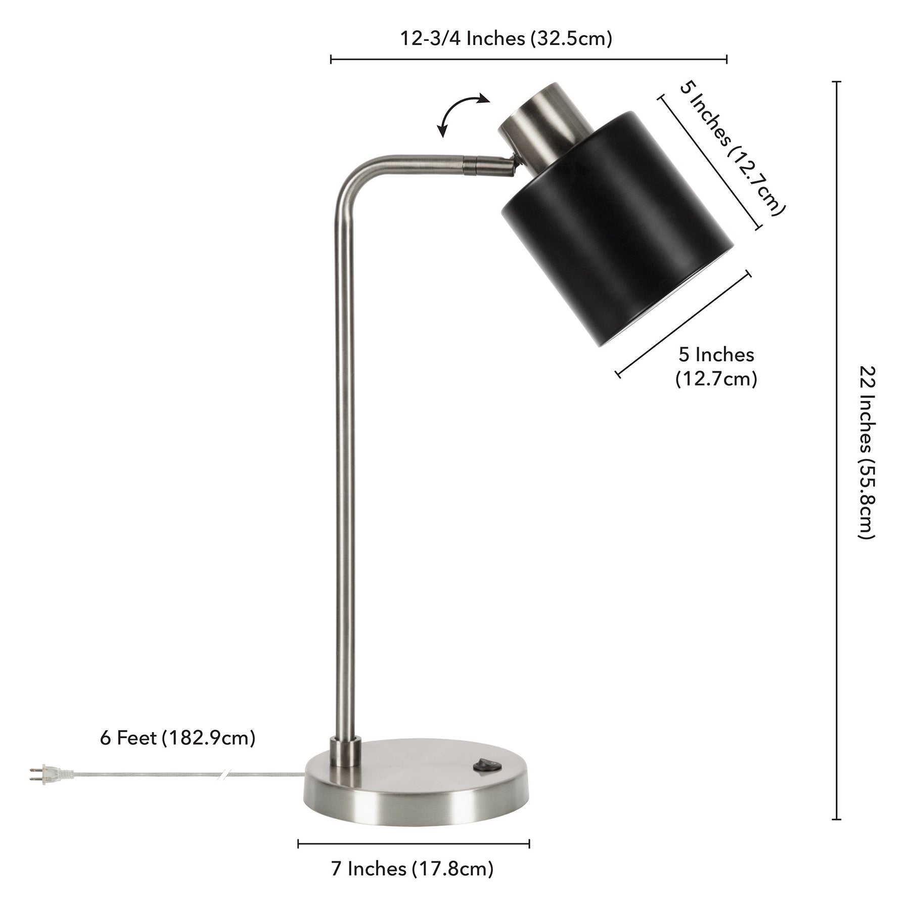 Truly a mix of design and functionality that doesn't compromise on style, this 20-inch silver metal desk table lamp with black drum shade will be a great addition to your space. A gorgeous silver metal base brings just the right amount of pizzazz to this fabulous lamp. Includes a black metal, drum shaped shade, making this a fashionable piece that will complement most any interior. This desk lamp provides 'task lighting' that will illuminate your working area for reading or writing. The light that this lamp throws is soft and warm to elevate the look of most any space in your home. The perfect lamp to create just the right natural and soothing light in your space. 20-inch H x 10-inch W x 7-inch D