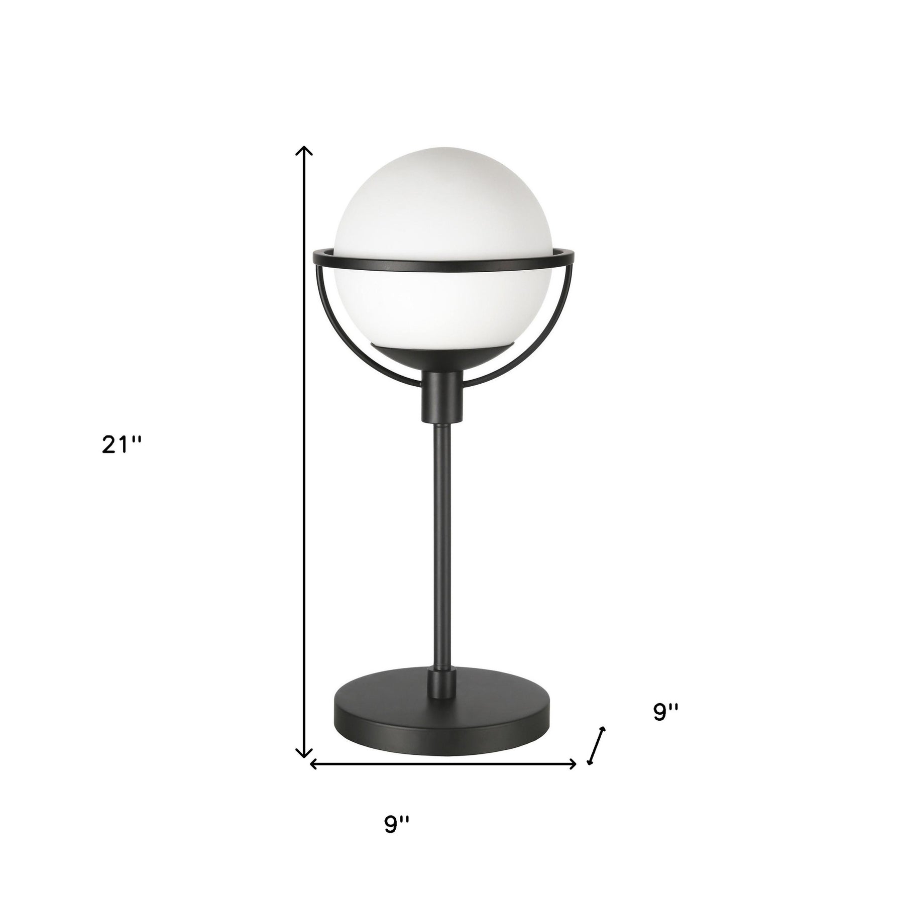 This 21-inch black metal globe table lamp with clear globe shade is a great way to add some brightness to any corner of your home. The lamp is made of sturdy metal and features a black color. The clear globe glass shade is a great compliment to this lamp. Modern in design, this globe table lamp is designed as simple sphere that lights from within. Use this lamp anywhere and elevate the look of the whole space. It is perfect for virtually any decor. 21-inch H x 9-inch W x 9-inch D