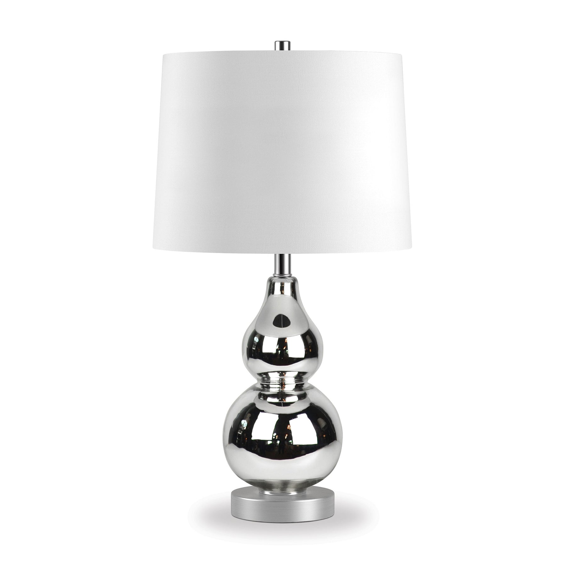 Truly a mix of design and functionality that doesn't compromise on style, this 21-inch nickel glass table lamp with white drum shade will be a great addition to your space. The lamp is made of sturdy glass and features a nickel color. The white drum fabric shade is a great compliment to this lamp. This standard table lamp is designed to provide general lighting to the area. Use this lamp anywhere and elevate the look of the whole space. Bring some lite and good vibes into your space with this updated and stylishly designed lamp. 21-inch H x 12-inch W x 12-inch D