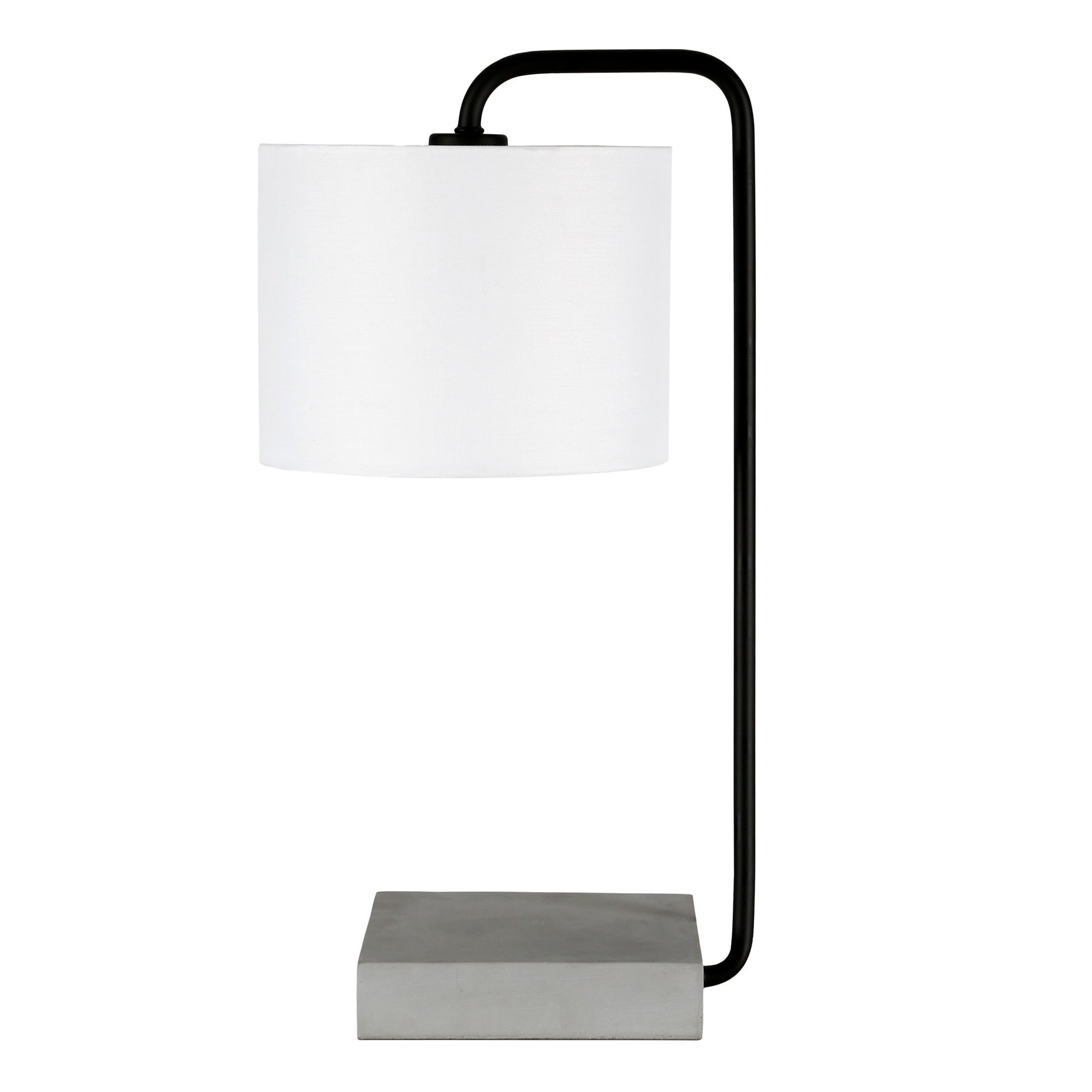 This 22-inch black and gray concrete arched table lamp with white drum shade is the perfect combination of design and function. The base of this lamp is made of black and gray concrete. Includes a white fabric, drum shaped shade, making this a fashionable piece that will complement most any interior. A sophisticated take on a classic, this arched table lamp is a great option for a unique look. High quality design makes this a great lamp for not only lighting, but accenting a room with style. It is perfect for virtually any decor. 22-inch H x 10-inch W x 9-inch D