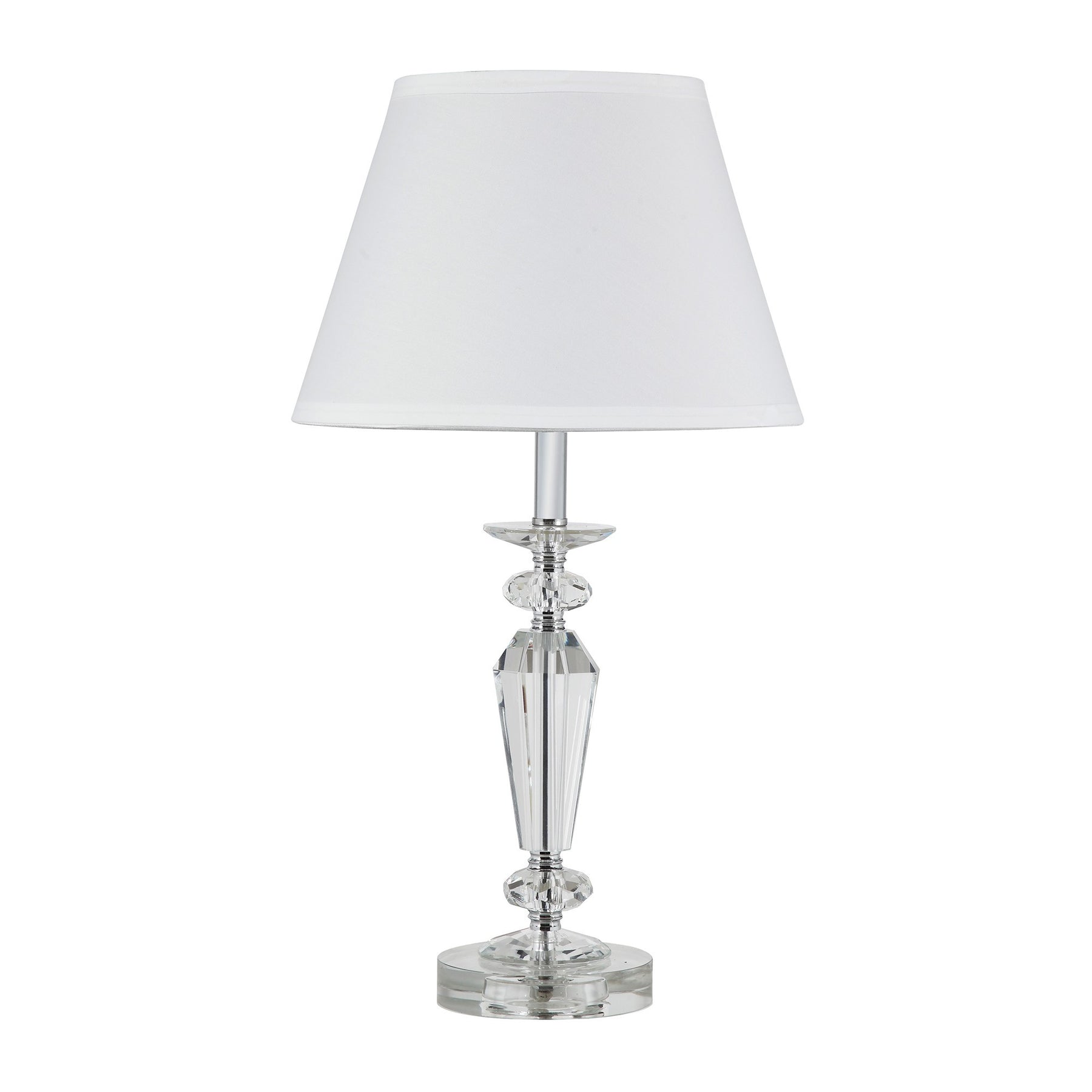 With this 22" clear bedside table lamp with white empire shade you can bring in design to any space along with adding some ambient lighting. The white shade has a empire shape and is made from fabric. Bedside table lamps help to add a soft and cozy glow to your bedroom. Great for evening reading! Use this lamp anywhere and elevate the look of the whole space. The perfect lamp to create just the right natural and soothing light in your space. 21.5" H x 11.75" W x 11.75" D