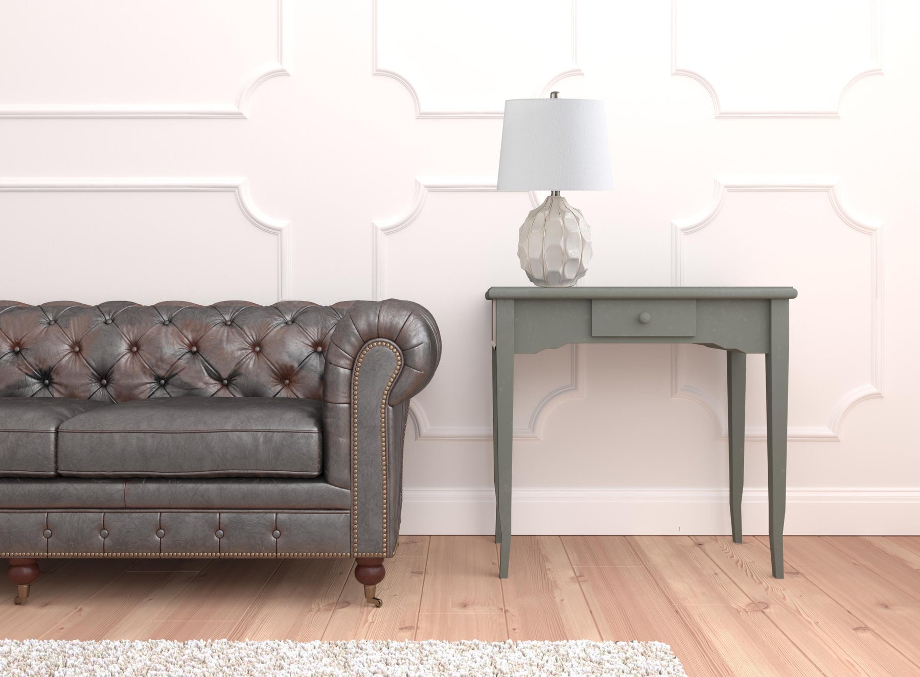 • Features a harp shade fitter to attach the off white fabric drum shade to the lamp base.