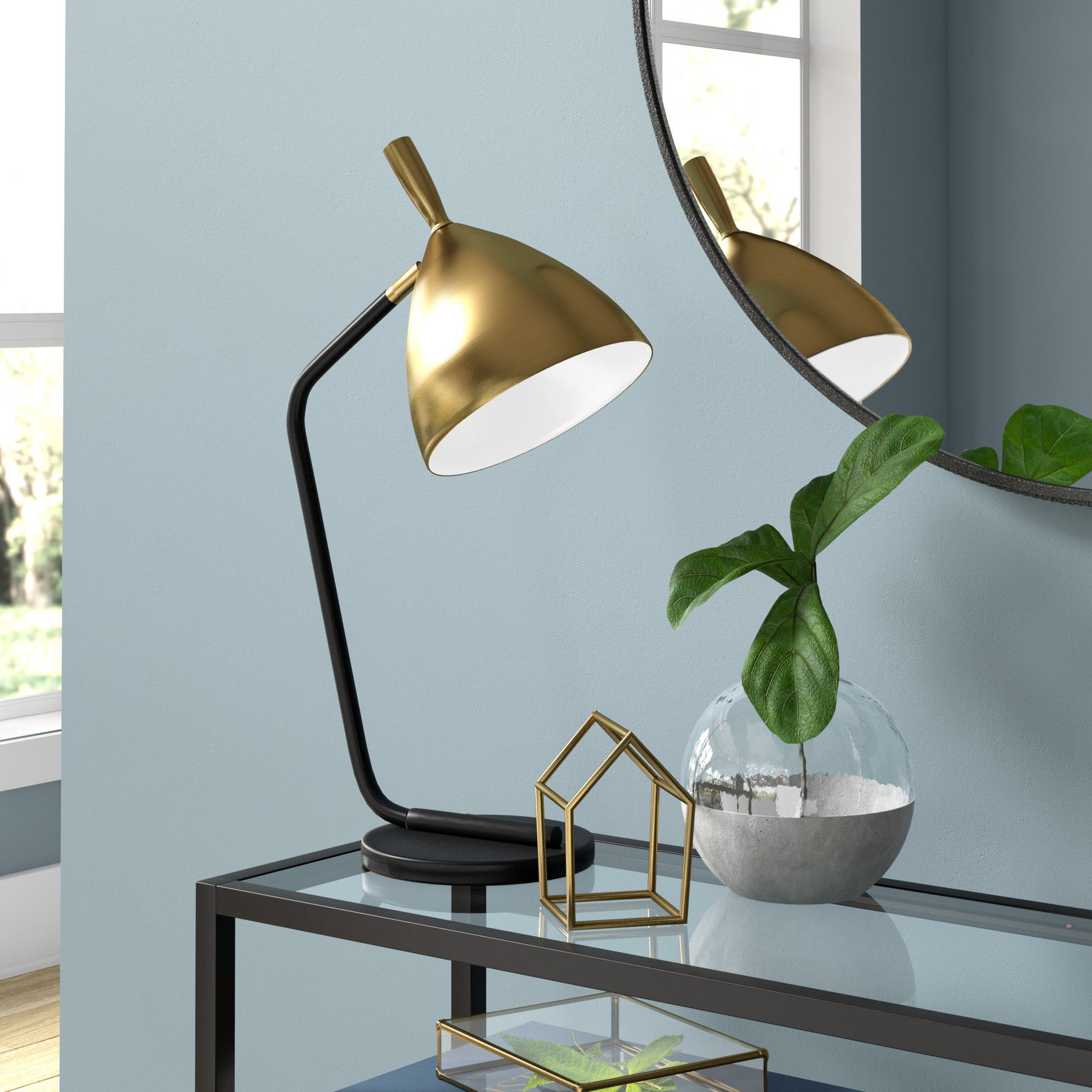 With this 23-inch black metal desk table lamp with gold bowl shade you can bring in design to any space along with adding some ambient lighting. A gorgeous black metal base brings just the right amount of pizzazz to this fabulous lamp. The gold bowl metal shade is finishes this piece off nicely and symmetrically this desk lamp provides 'task lighting' that will illuminate your working area for reading or writing. Use this lamp anywhere and elevate the look of the whole space. Bring some lite and good vibes into your space with this updated and stylishly designed lamp. 23-inch H x 14-inch W x 7-inch D