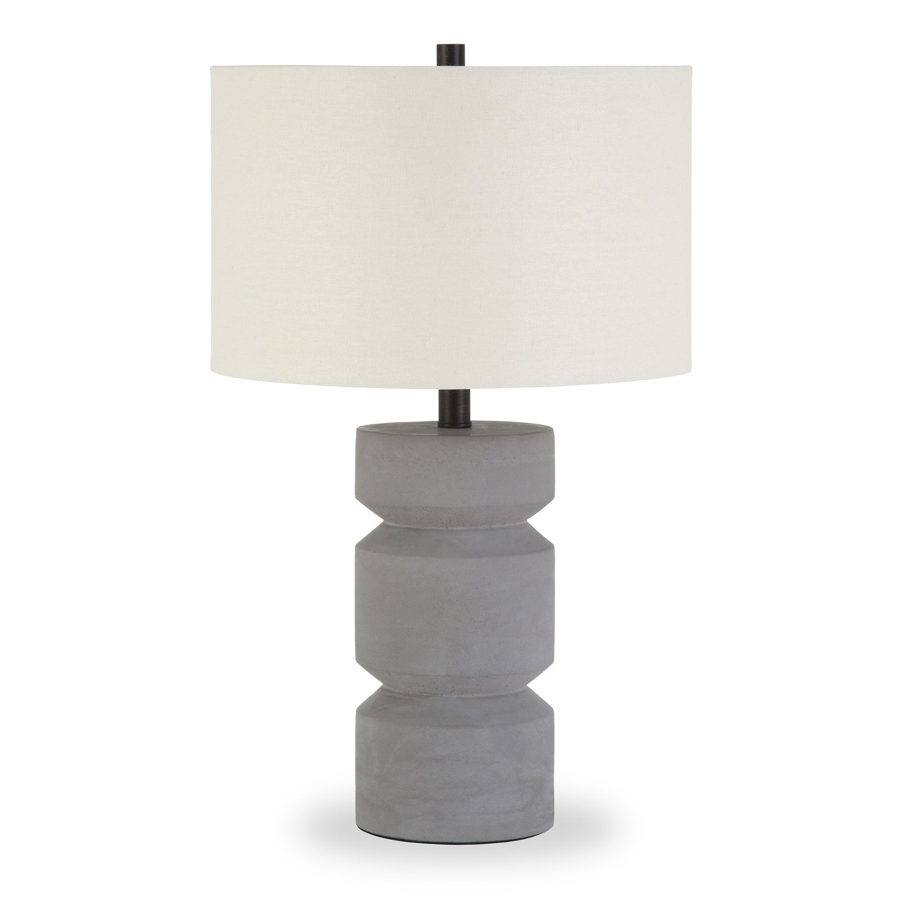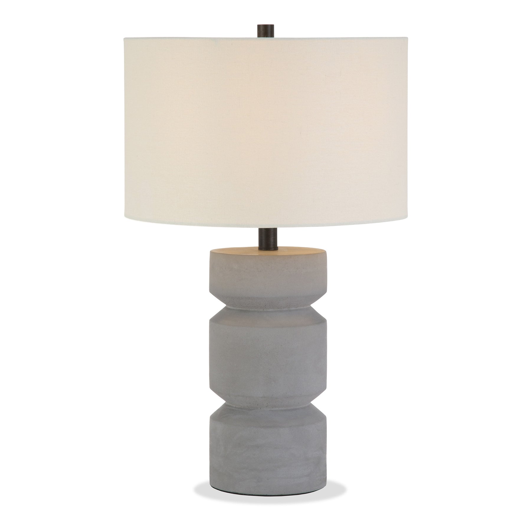 This 23" gray concrete faceted column table lamp with white drum shade is the perfect combination of design and function. The lamp is made of sturdy concrete in a sculptural geometric facet design that features a gray color. The white drum fabric shade is finishes this piece off nicely and symmetrically This standard table lamp is designed to provide general lighting to the area. High quality design makes this a great lamp for not only lighting, but accenting a room with style. It is perfect for virtually any decor. 23" H x 14" W x 14" D