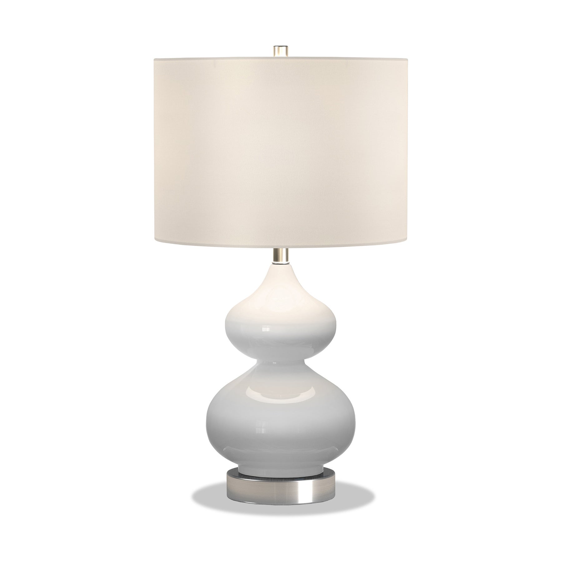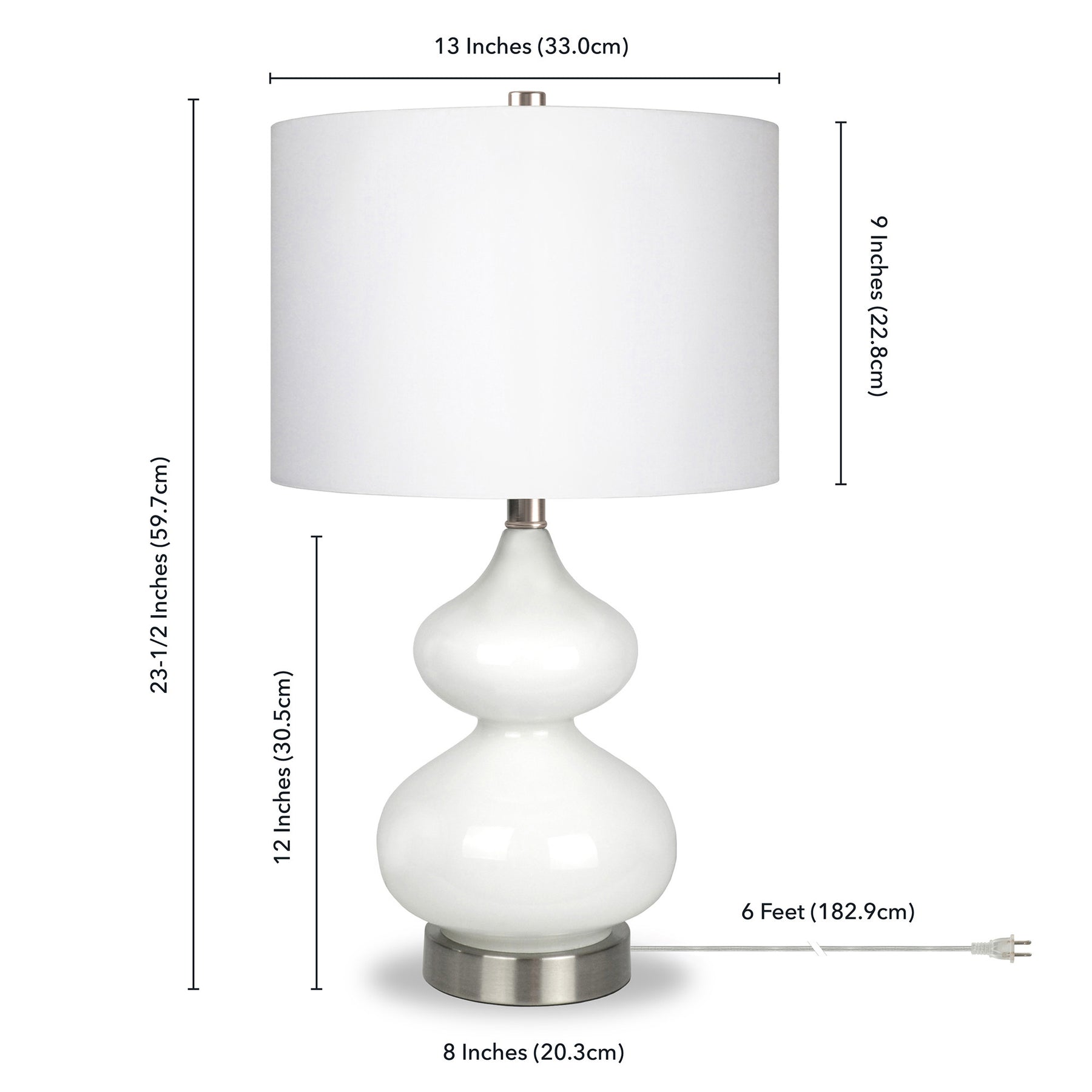 This 23-inch white and silver glass table lamp with white drum shade is the perfect combination of design and function. A gorgeous white and silver glass base brings just the right amount of pizzazz to this fabulous lamp. The white drum fabric shade is a great compliment to this lamp. This standard table lamp is designed to provide general lighting to the area. High quality design makes this a great lamp for not only lighting, but accenting a room with style. Bring some lite and good vibes into your space with this updated and stylishly designed lamp. 23-inch H x 13-inch W x 13-inch D