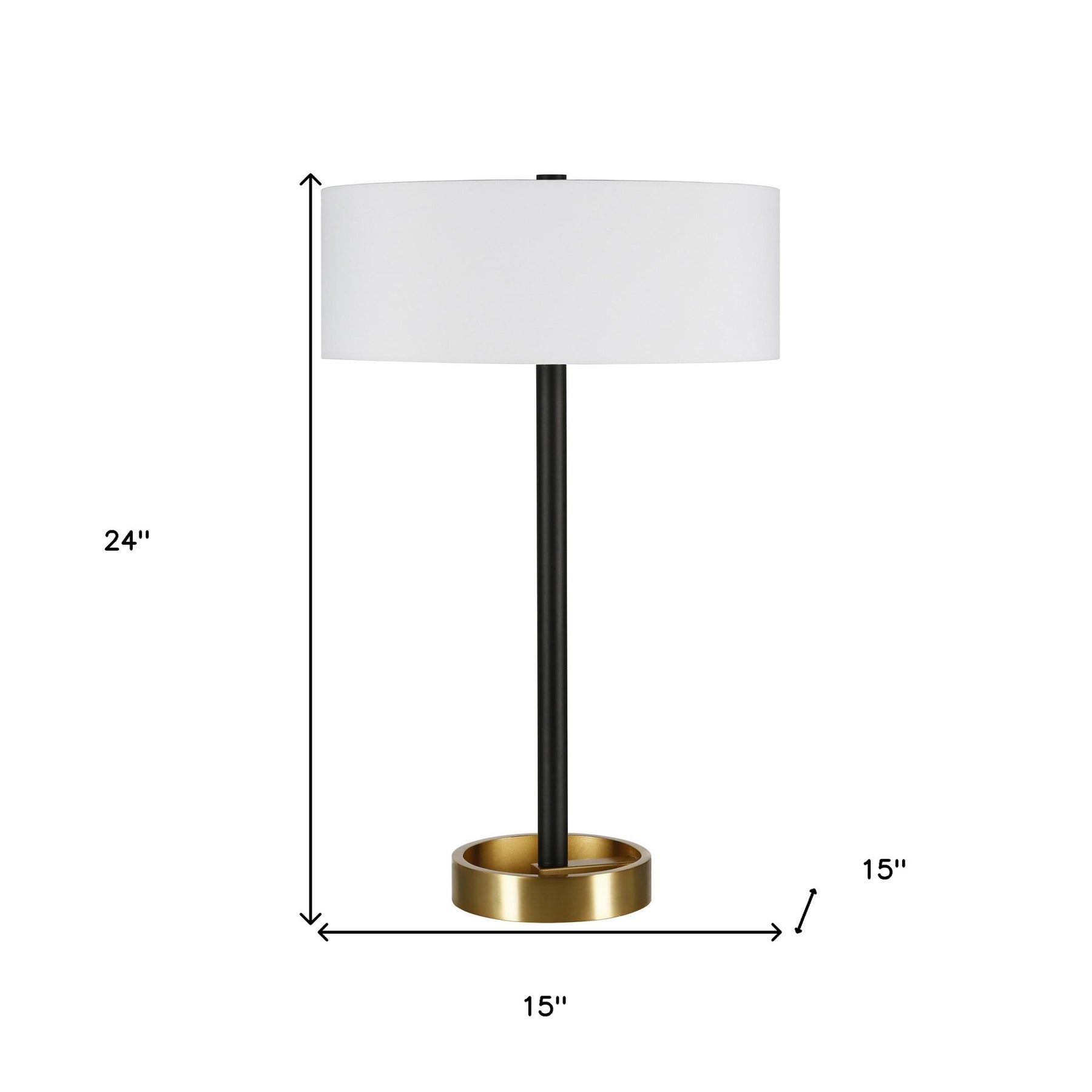 24" Black and Gold Metal Table Lamp With White Drum Shade