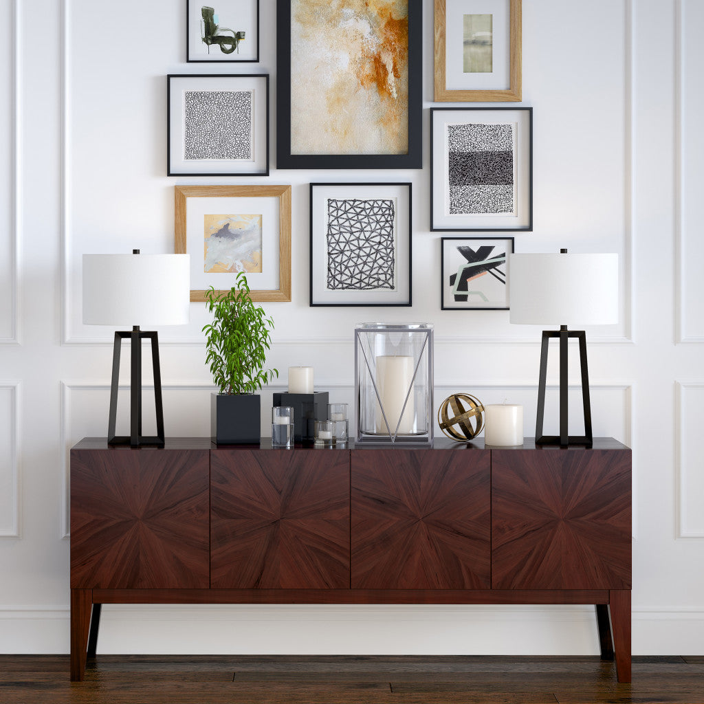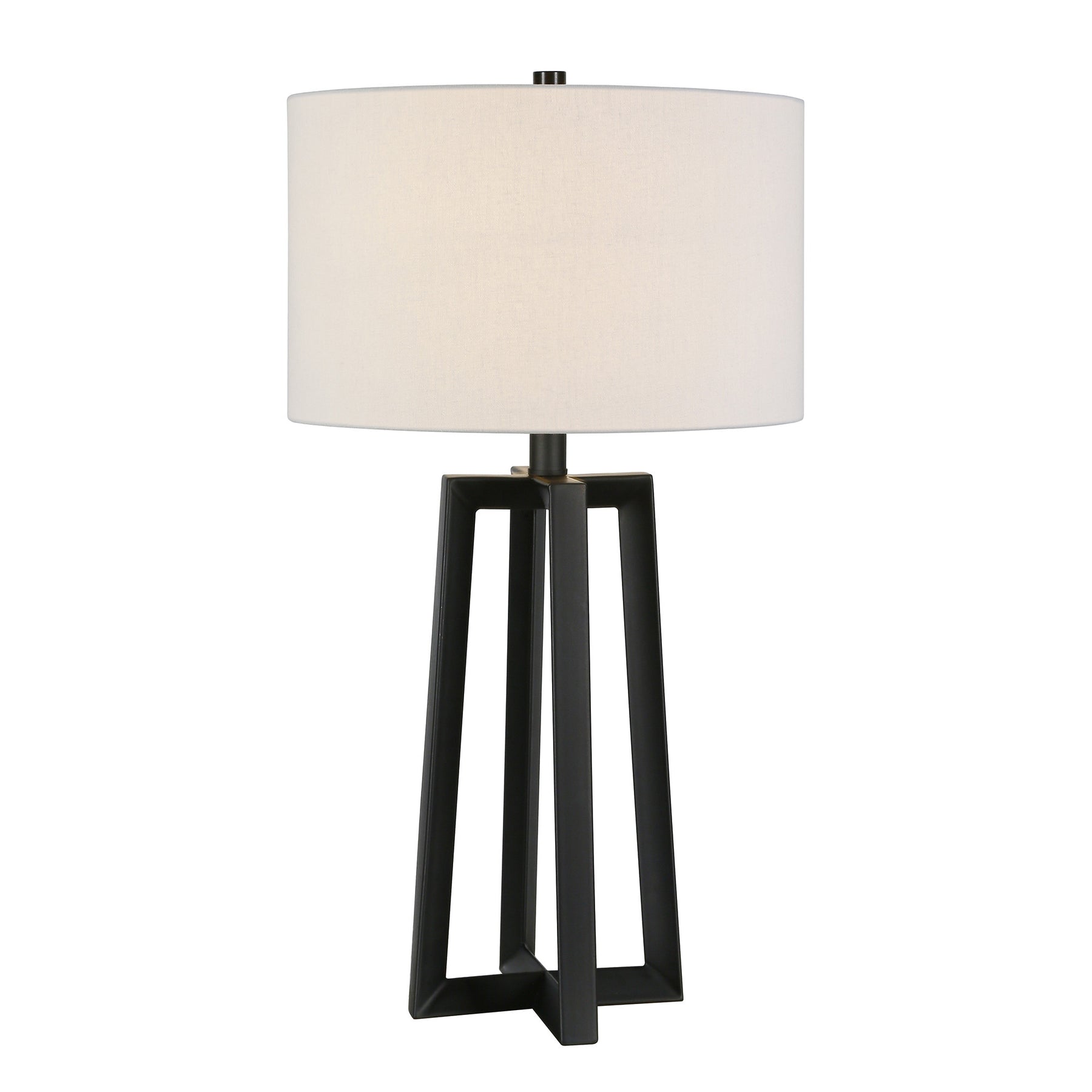 Bring of level of elegance and freshness to your space with this high quality 24-inch black and white metal table lamp with white drum shade. The lamp is made of sturdy metal and features a black and white color. The white drum fabric shade is a great compliment to this lamp. This standard table lamp is designed to provide general lighting to the area. High quality design makes this a great lamp for not only lighting, but accenting a room with style. The perfect lamp to create just the right natural and soothing light in your space. 24-inch H x 14-inch W x 14-inch D
