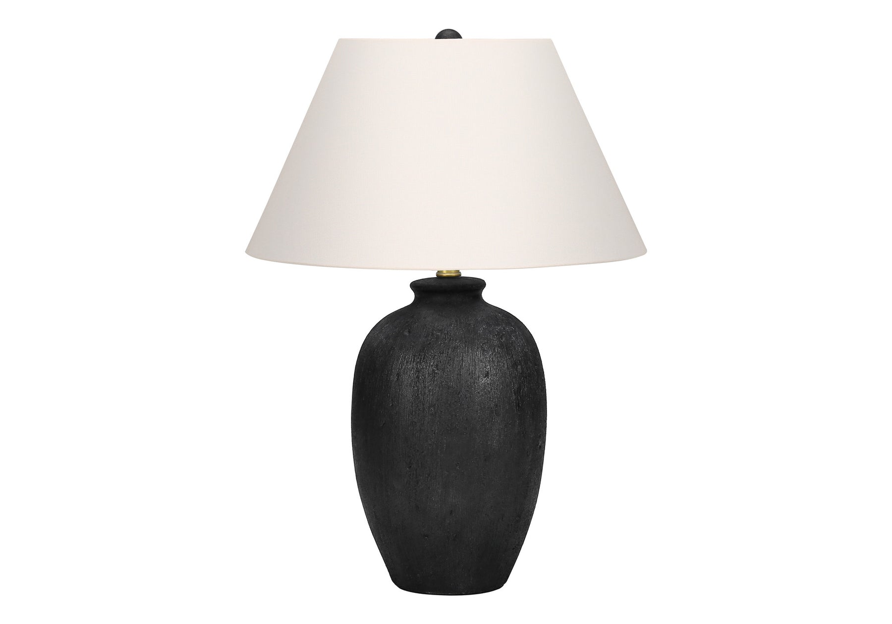 With this 24-inch black ceramic round table lamp with ivory empire shade you can bring in design to any space along with adding some ambient lighting. The lamp is made of sturdy ceramic and features a black color. Includes a ivory linen, empire shaped shade, making this a fashionable piece that will complement most any interior. This standard table lamp is designed to provide general lighting to the area. High quality design makes this a great lamp for not only lighting, but accenting a room with style. The perfect lamp to create just the right natural and soothing light in your space. 24-inch H x 17-inch W x 17-inch D