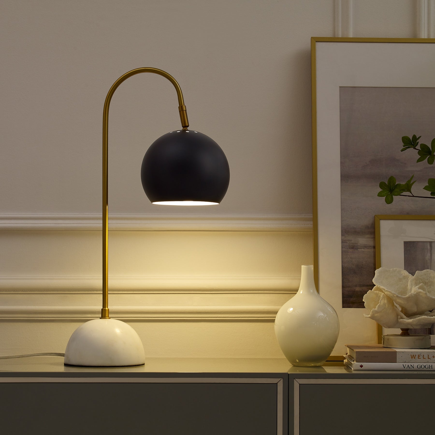 Truly a mix of design and functionality that doesn't compromise on style, this 24-inch black iron desk table lamp with black dome shade will be a great addition to your space. The base of this lamp is made of black iron. The black dome metal shade is a great compliment to this lamp. This desk lamp provides 'task lighting' that will illuminate your working area for reading or writing. High quality design makes this a great lamp for not only lighting, but accenting a room with style. The perfect lamp to create just the right natural and soothing light in your space. 24-inch H x 15-inch W x 15-inch D