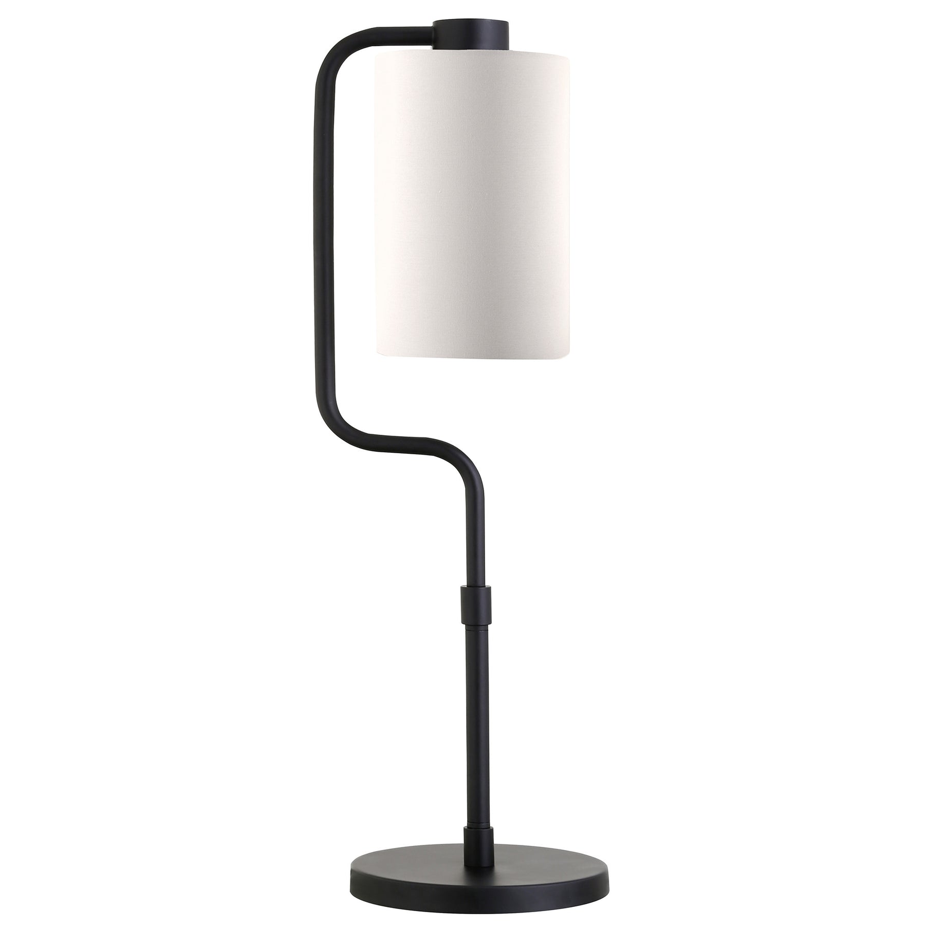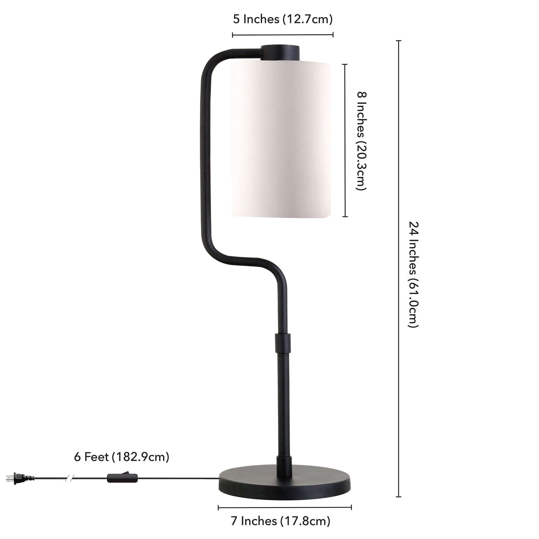 Embrace the good life with this hard working and stylish 24-inch black metal table lamp with white cylinder shade. The base of this lamp is made of metal finished in a black tone. The white cylinder fabric shade is a great compliment to this lamp. This standard table lamp is designed to provide general lighting to the area. Use this lamp anywhere and elevate the look of the whole space. Bring some lite and good vibes into your space with this updated and stylishly designed lamp. 24-inch H x 7-inch W x 7-inch D