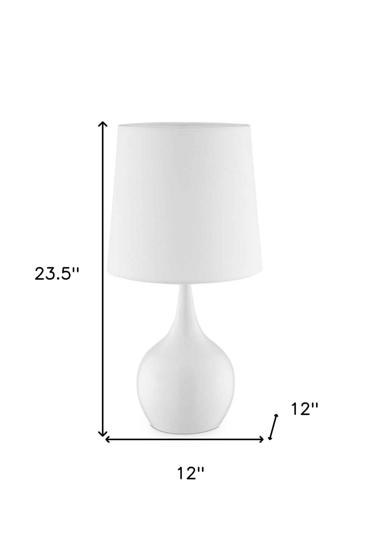 Embrace the good life with this hard working and stylish 24" white metal bedside table lamp with off-white shade. A gorgeous white metalbase brings just the right amount of pizzazz to this fabulous lamp. Bedside table lamps help to add a soft and cozy glow to your bedroom. Great for evening reading! High quality design makes this a great lamp for not only lighting, but accenting a room with style. It is perfect for virtually any decor. 23.5" H x 12" W x 12" D