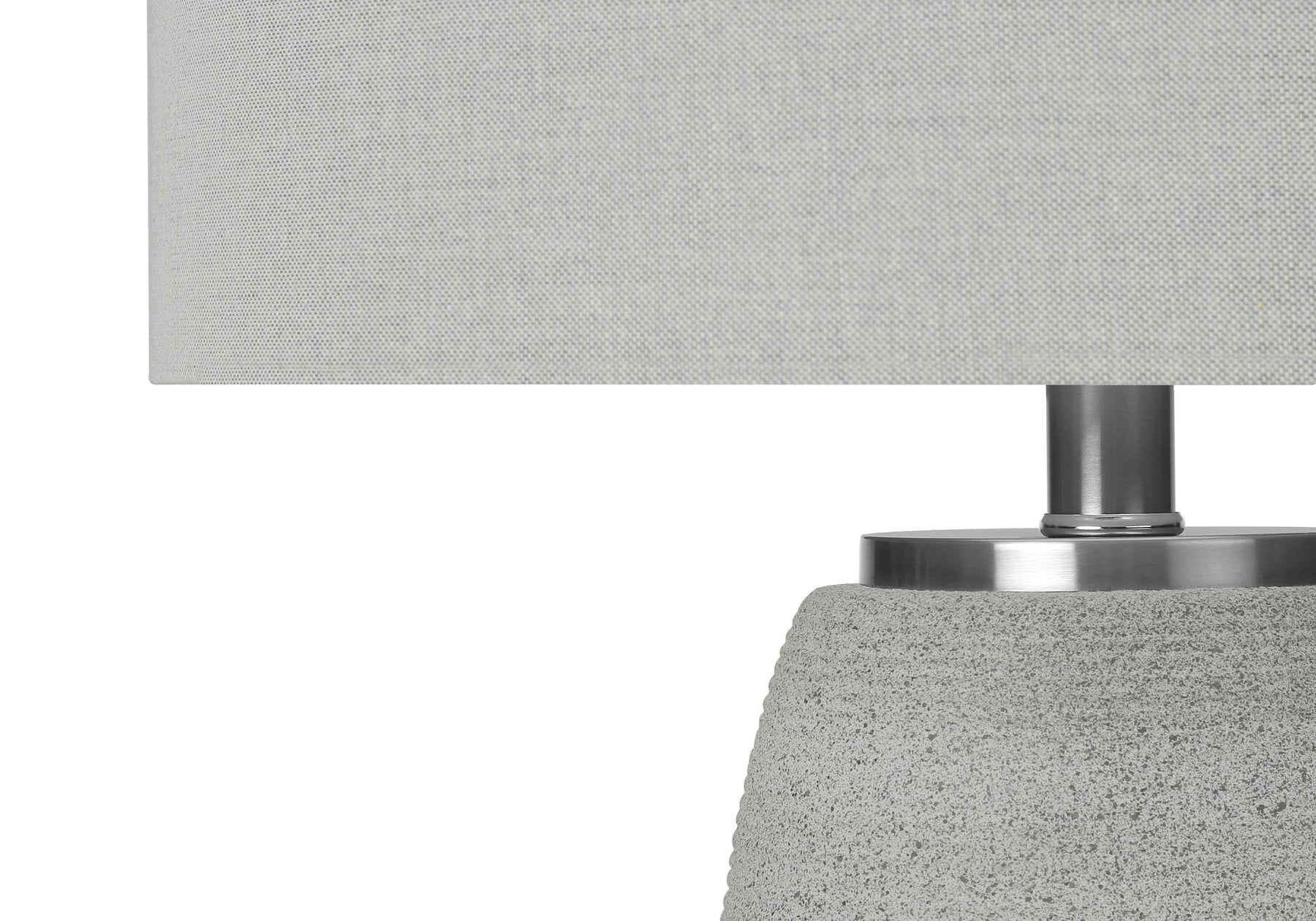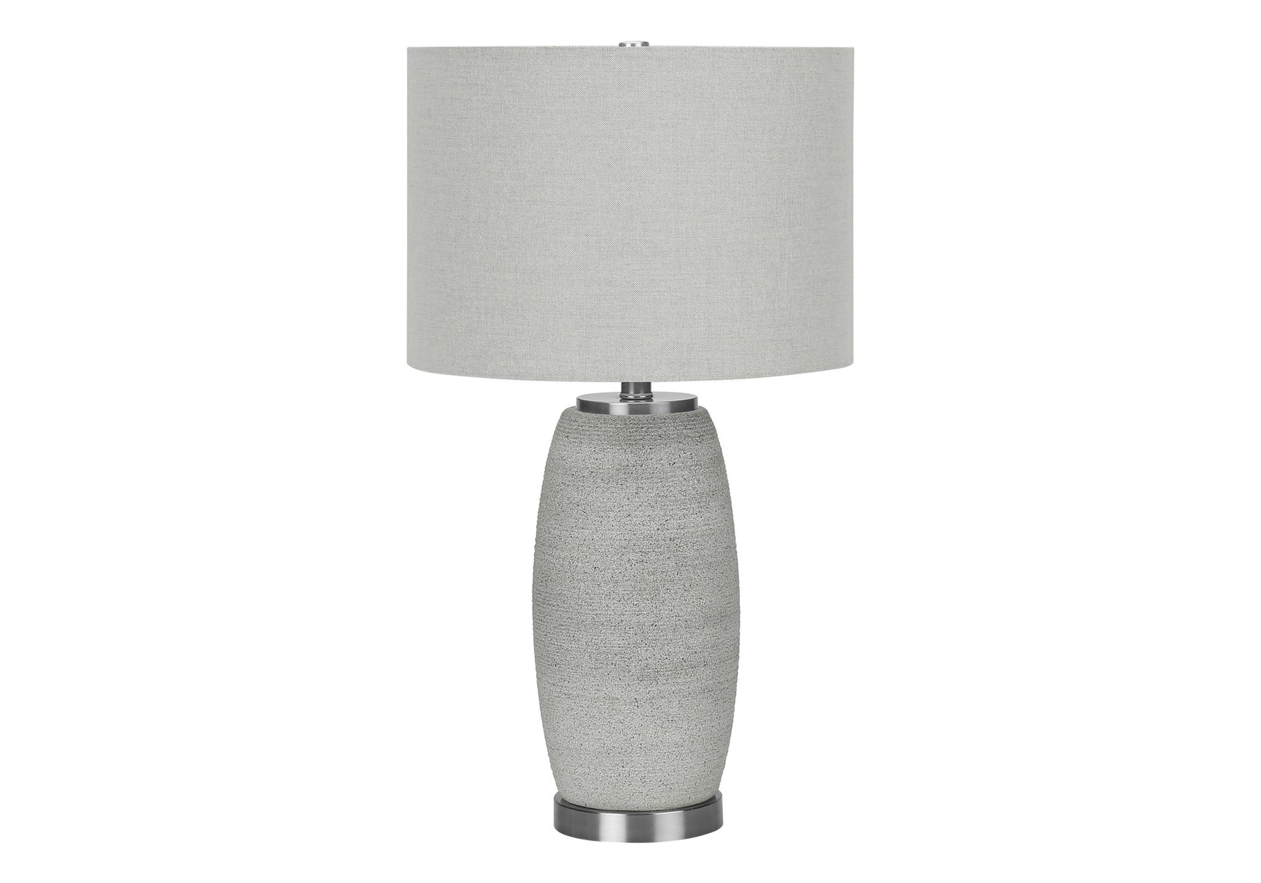 This 25-inch gray and silver ceramic cylinder table lamp with gray drum shade is the perfect combination of design and function. The lamp is made of sturdy ceramic and features a gray and silver color. The gray shade has a drum shape and is made of linen, which makes it a perfect choice. This standard table lamp is designed to provide general lighting to the area. The light that this lamp throws is soft and warm to elevate the look of most any space in your home. Bring some lite and good vibes into your space with this updated and stylishly designed lamp. 25-inch H x 14-inch W x 14-inch D