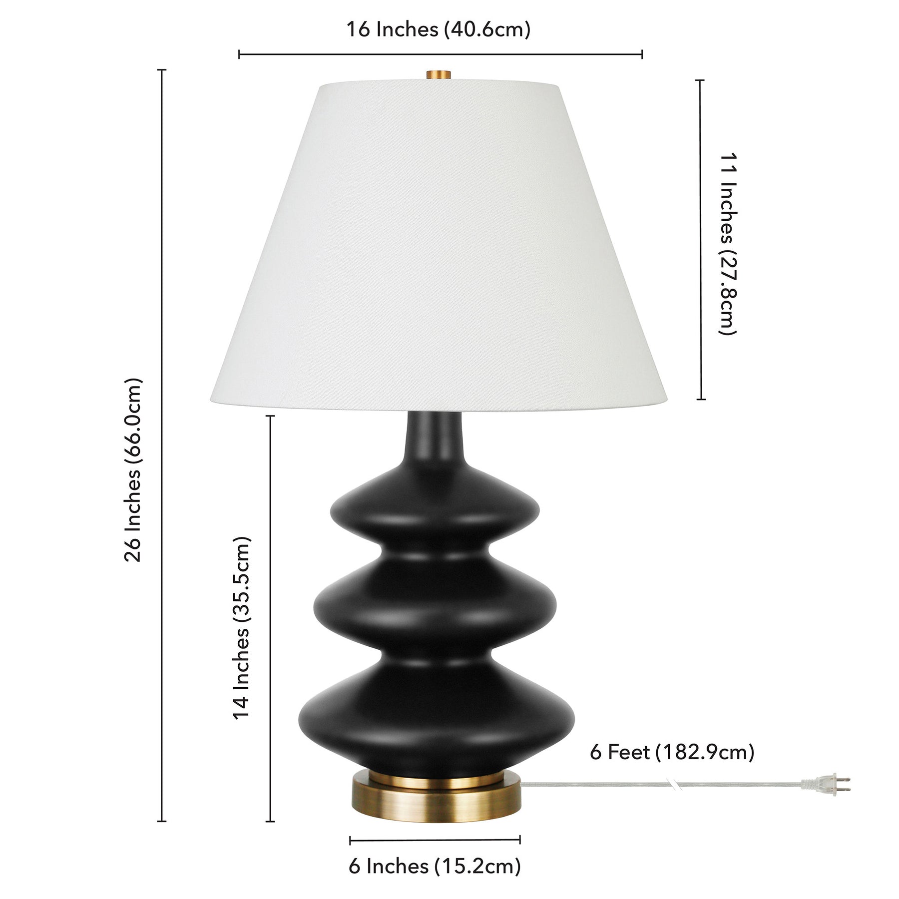 Add a bright anchor to your room with this 26-inch black and gold glass table lamp with white empire shade. The lamp is made of sturdy glass and features a black and gold color. The white shade has a empire shape and is made of fabric, which makes it a perfect choice. This standard table lamp is designed to provide general lighting to the area. The light that this lamp throws is soft and warm to elevate the look of most any space in your home. The perfect lamp to create just the right natural and soothing light in your space. 26-inch H x 16-inch W x 16-inch D