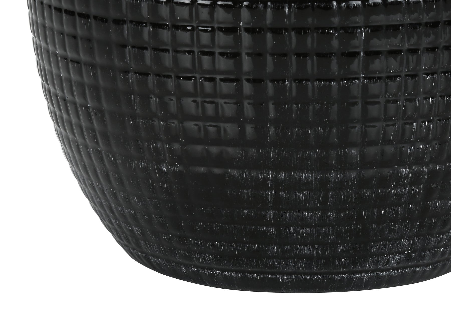 Truly a mix of design and functionality that doesn't compromise on style, this 26-inch black ceramic urn table lamp with ivory drum shade will be a great addition to your space. The base of this lamp is made of ceramic finished in a gorgeous black glaze that features a geometric textural design. Includes a ivory linen, drum shaped shade, making this a fashionable piece that will complement most any interior. This standard table lamp is designed to provide general lighting to the area. Use this lamp anywhere and elevate the look of the whole space. The perfect lamp to create just the right natural and soothing light in your space. 25.75-inch H x 16-inch W x 16-inch D