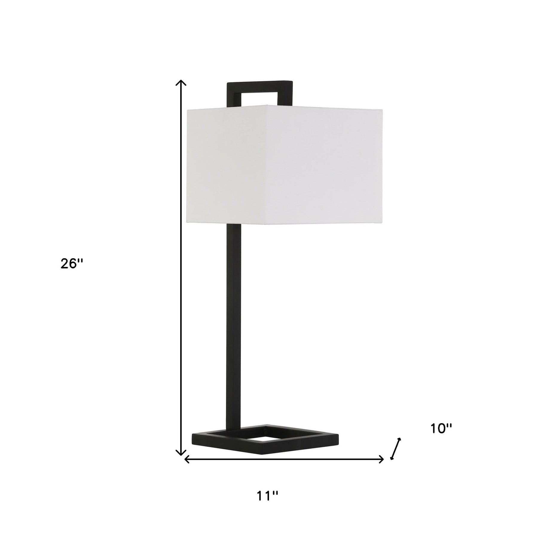 Bring of level of elegance and freshness to your space with this high quality 26-inch black metal arched table lamp with white square shade. The base of this lamp is made of metal finished in a black tone. The white shade has a square shape and is made of fabric, which makes it a perfect choice. A sophisticated take on a classic, this arched table lamp is a great option for a unique look. High quality design makes this a great lamp for not only lighting, but accenting a room with style. Bring some lite and good vibes into your space with this updated and stylishly designed lamp. 26-inch H x 11-inch W x 10-inch D