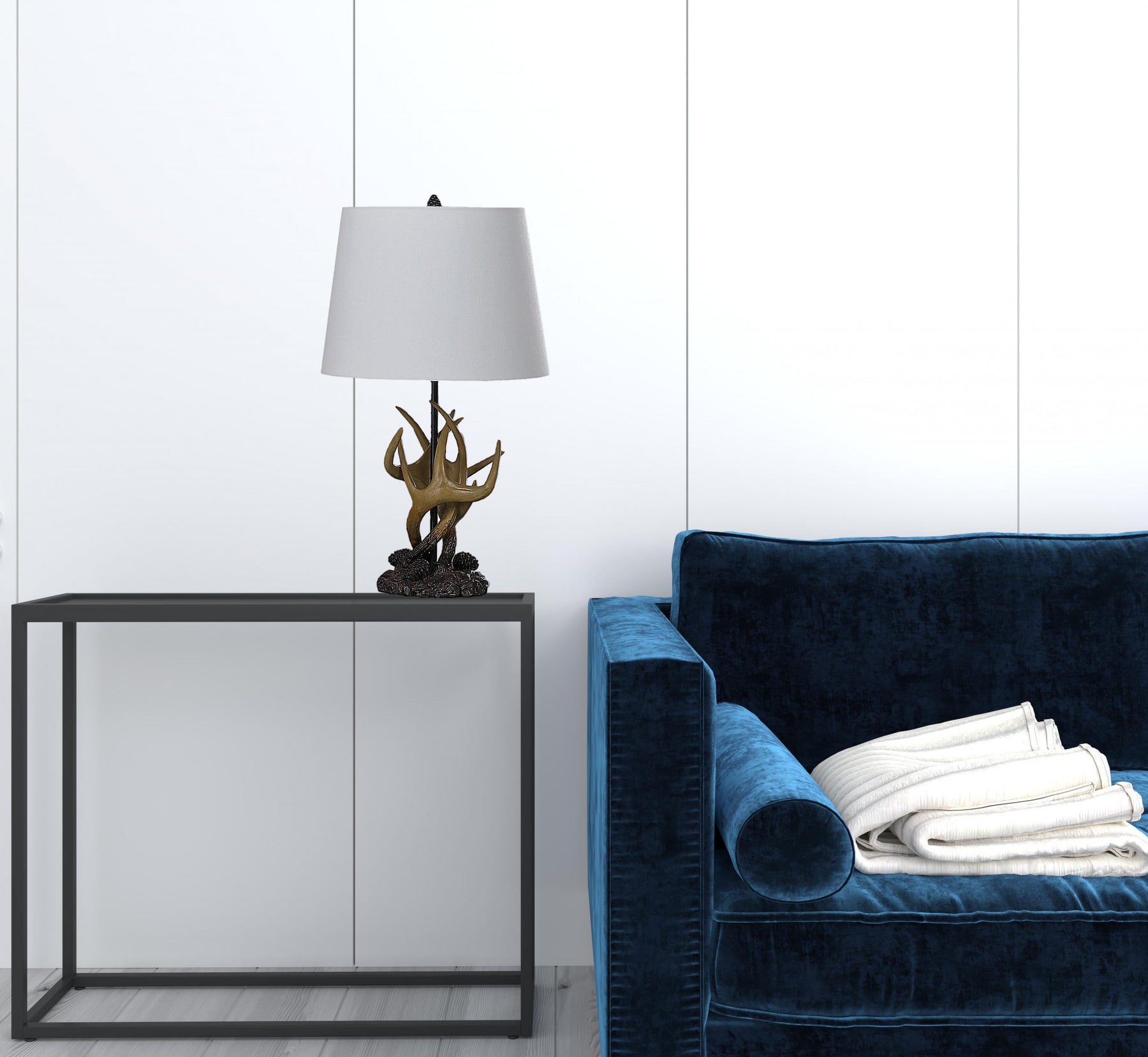Bring of level of elegance and freshness to your space with this high quality 26" black novelty table lamp with shade. The base of this lamp is made of polyresin finished in a black tone. High quality design makes this a great lamp for not only lighting, but accenting a room with style. The perfect lamp to create just the right natural and soothing light in your space. 26" H x 15" W x 15" D