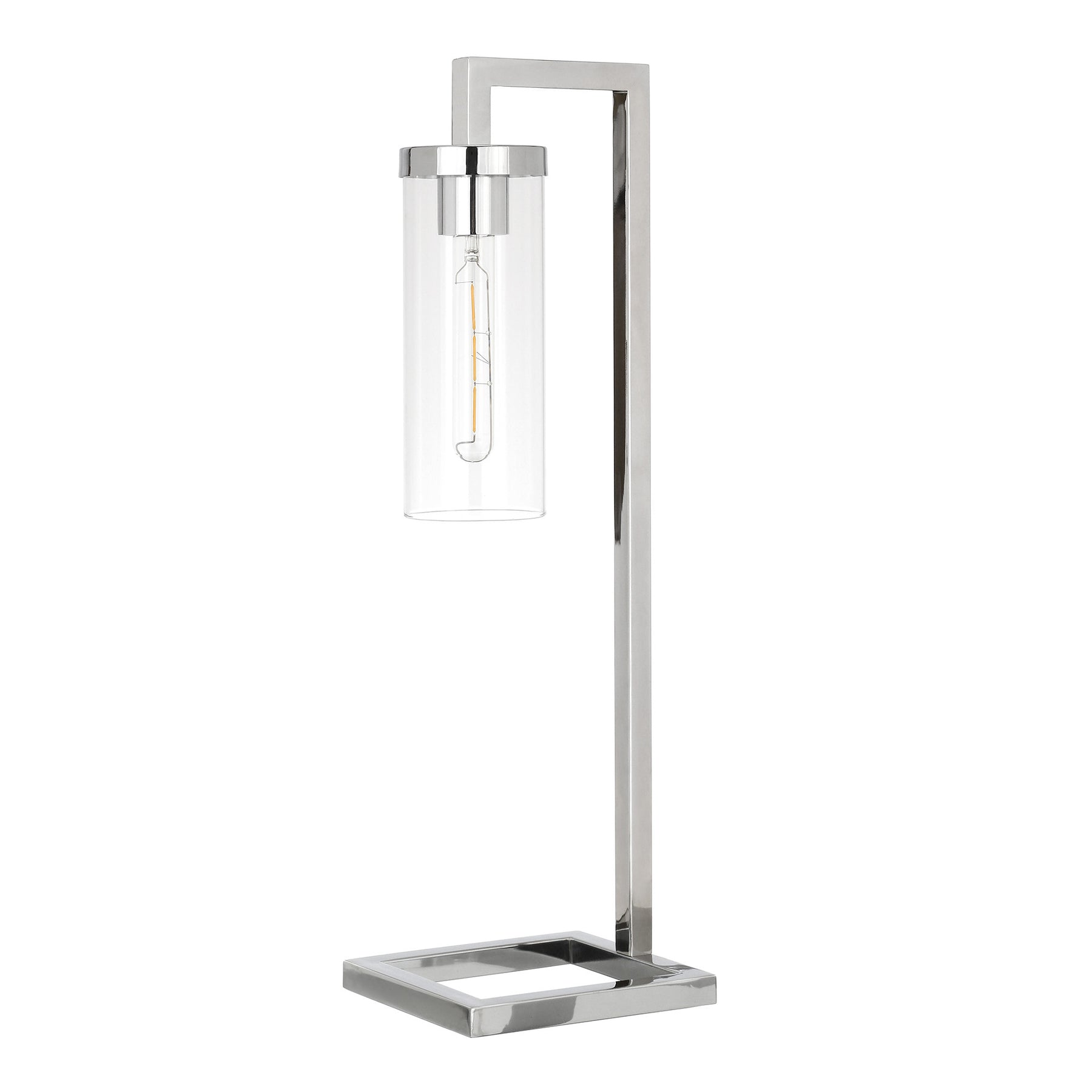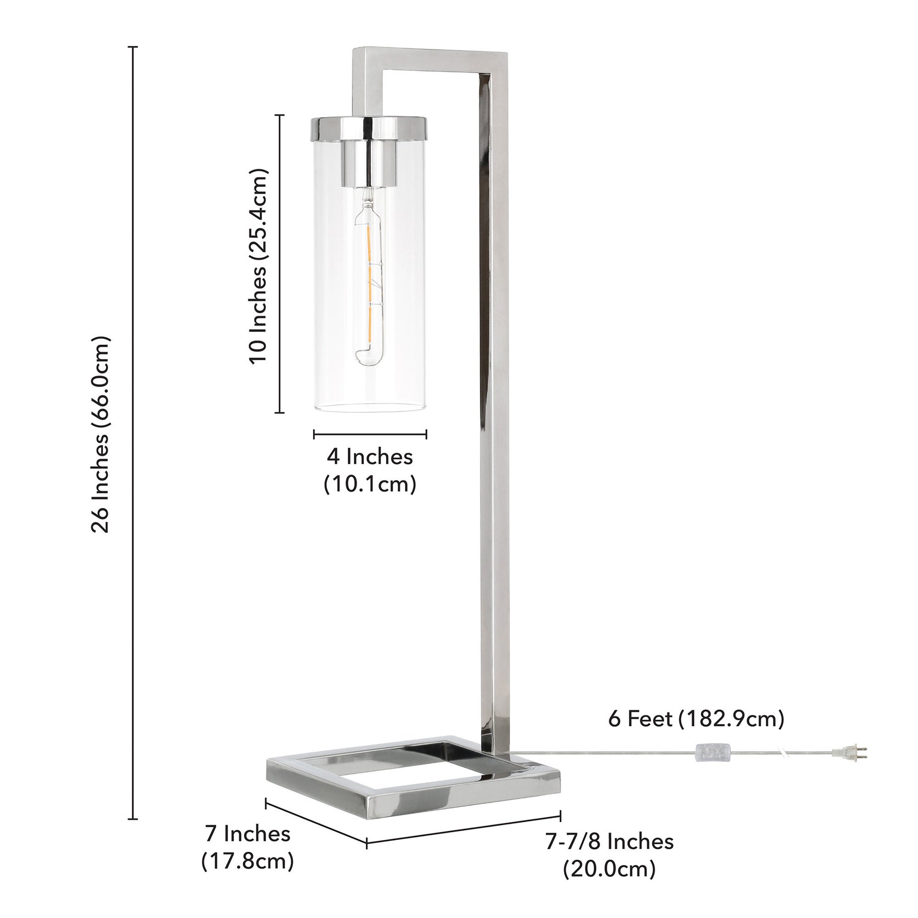 Bring of level of elegance and freshness to your space with this high quality 26-inch nickel metal arched table lamp with clear cylinder shade. The base of this lamp is made of nickel metal. The clear shade has a cylinder shape and is made from glass. A sophisticated take on a classic, this arched table lamp is a great option for a unique look. The light that this lamp throws is soft and warm to elevate the look of most any space in your home. It is perfect for virtually any decor. 26-inch H x 8-inch W x 7-inch D