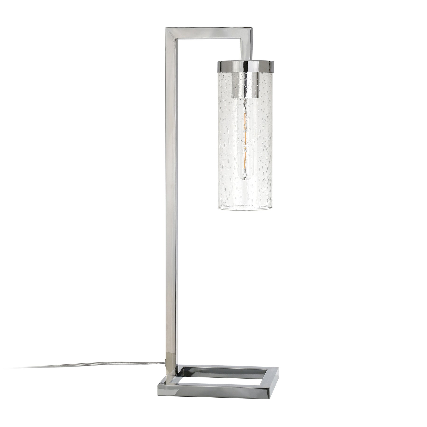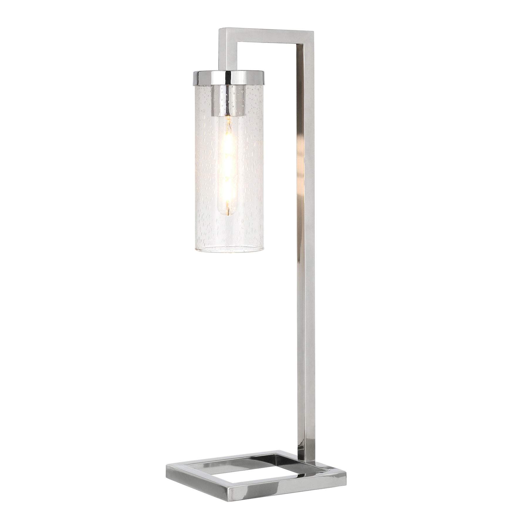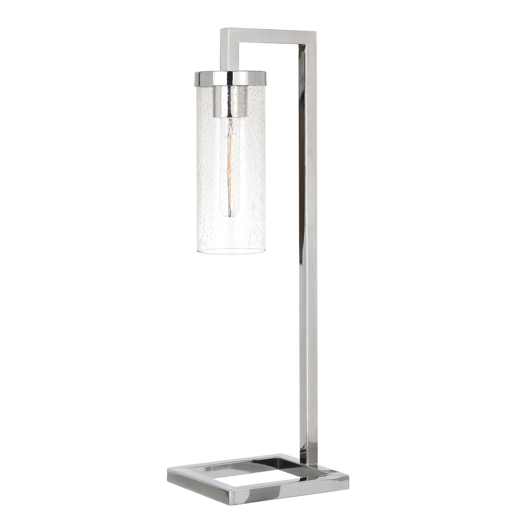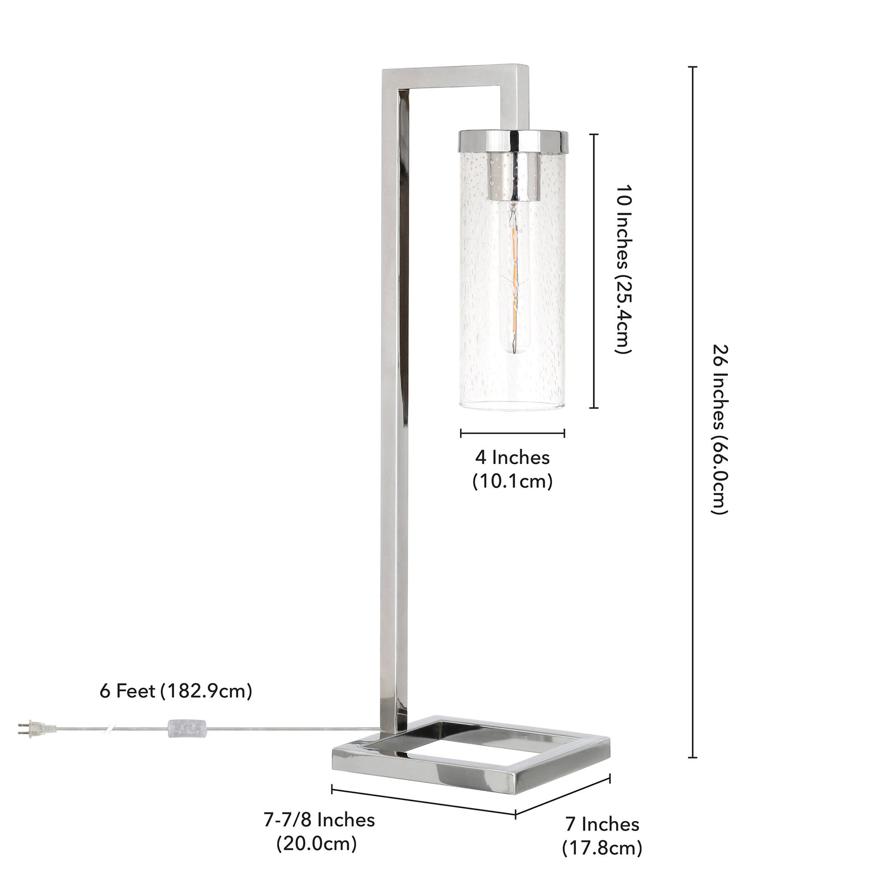 Truly a mix of design and functionality that doesn't compromise on style, this 26-inch nickel metal arched table lamp with clear seeded cylinder shade will be a great addition to your space. The lamp is made of sturdy metal and features a nickel color. Includes a clear glass, cylinder shaped shade, making this a fashionable piece that will complement most any interior. A sophisticated take on a classic, this arched table lamp is a great option for a unique look. Use this lamp anywhere and elevate the look of the whole space. The perfect lamp to create just the right natural and soothing light in your space. 26-inch H x 8-inch W x 7-inch D