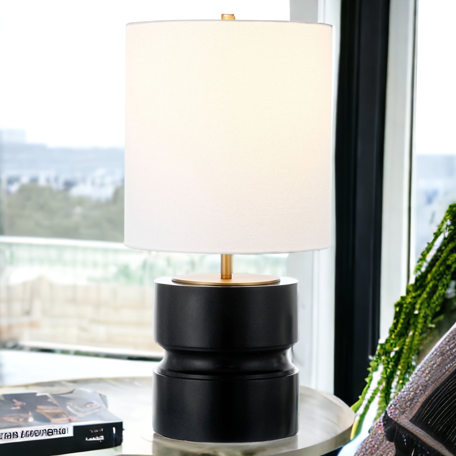 With this 27-inch black metal table lamp with white drum shade you can bring in design to any space along with adding some ambient lighting. The base of this lamp is made of metal finished in a black tone. The white shade has a drum shape and is made from fabric. This standard table lamp is designed to provide general lighting to the area. Use this lamp anywhere and elevate the look of the whole space. Bring some lite and good vibes into your space with this updated and stylishly designed lamp. 27-inch H x 14-inch W x 14-inch D