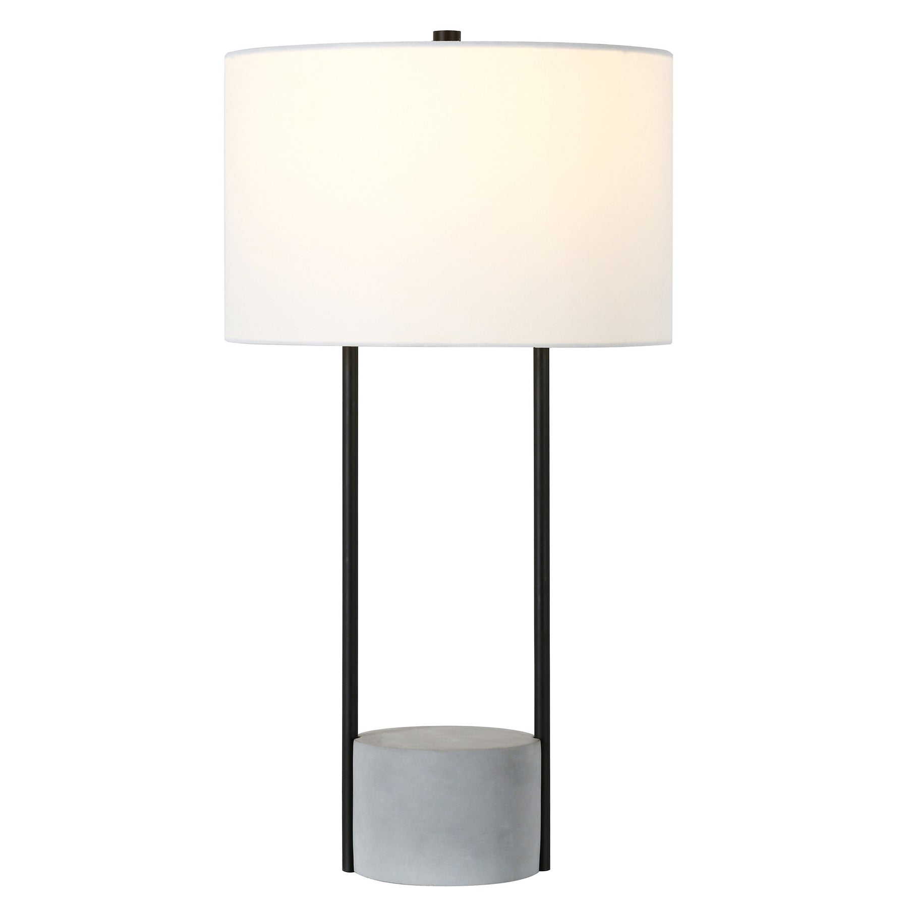 Add a bright anchor to your room with this 27-inch gray and black concrete table lamp with white drum shade. The base of this lamp is made of concrete finished in a gray and black tone. The white drum fabric shade is a great compliment to this lamp. This standard table lamp is designed to provide general lighting to the area. Use this lamp anywhere and elevate the look of the whole space. Bring some lite and good vibes into your space with this updated and stylishly designed lamp. 27-inch H x 14-inch W x 14-inch D