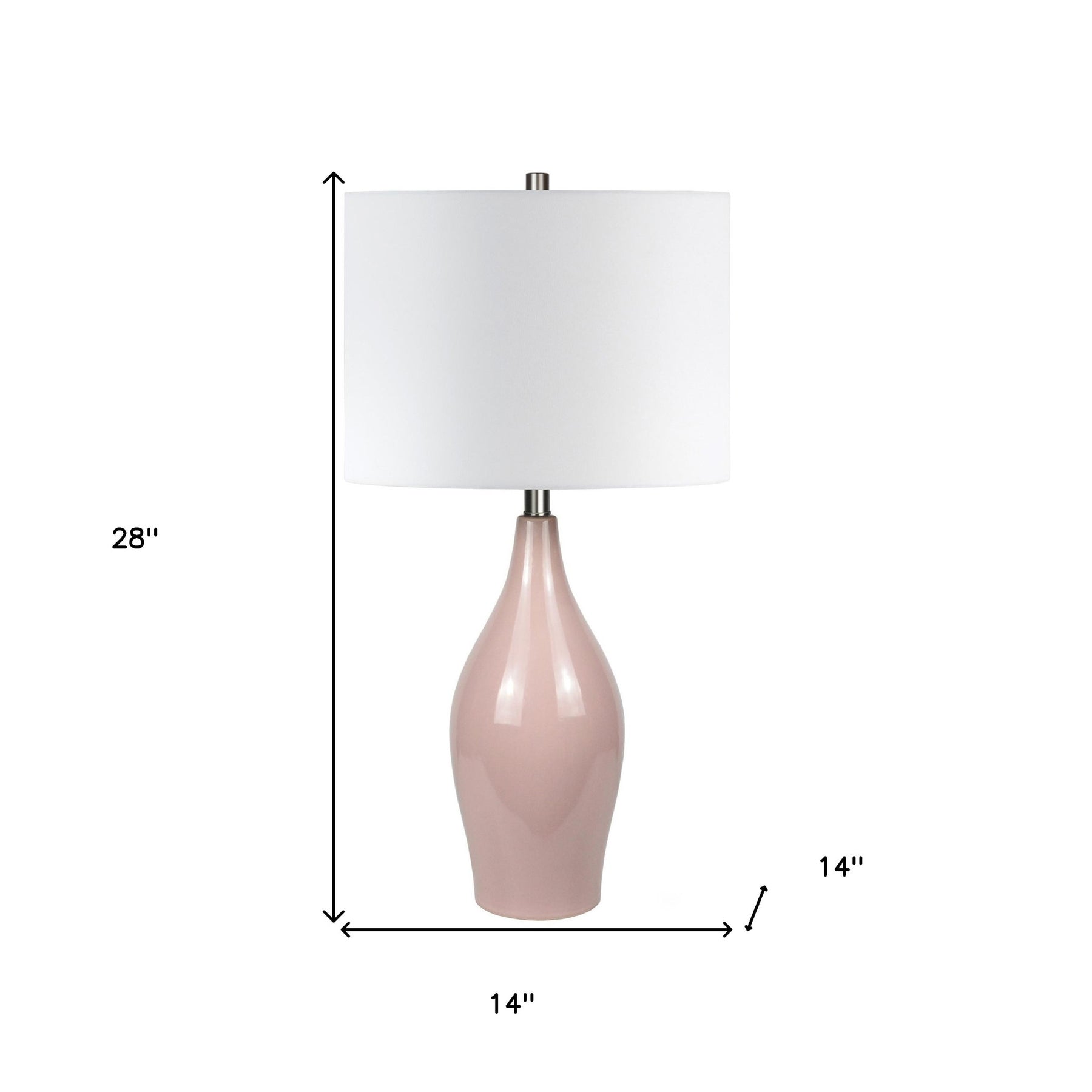 Truly a mix of design and functionality that doesn't compromise on style, this 28-inch dusty rose porcelain cylinder table lamp with white drum shade will be a great addition to your space. A gorgeous dusty rose porcelain base brings just the right amount of pizzazz to this fabulous lamp. The white drum fabric shade is a great compliment to this lamp. This standard table lamp is designed to provide general lighting to the area. Use this lamp anywhere and elevate the look of the whole space. Bring some lite and good vibes into your space with this updated and stylishly designed lamp. 28-inch H x 14-inch W x 14-inch D