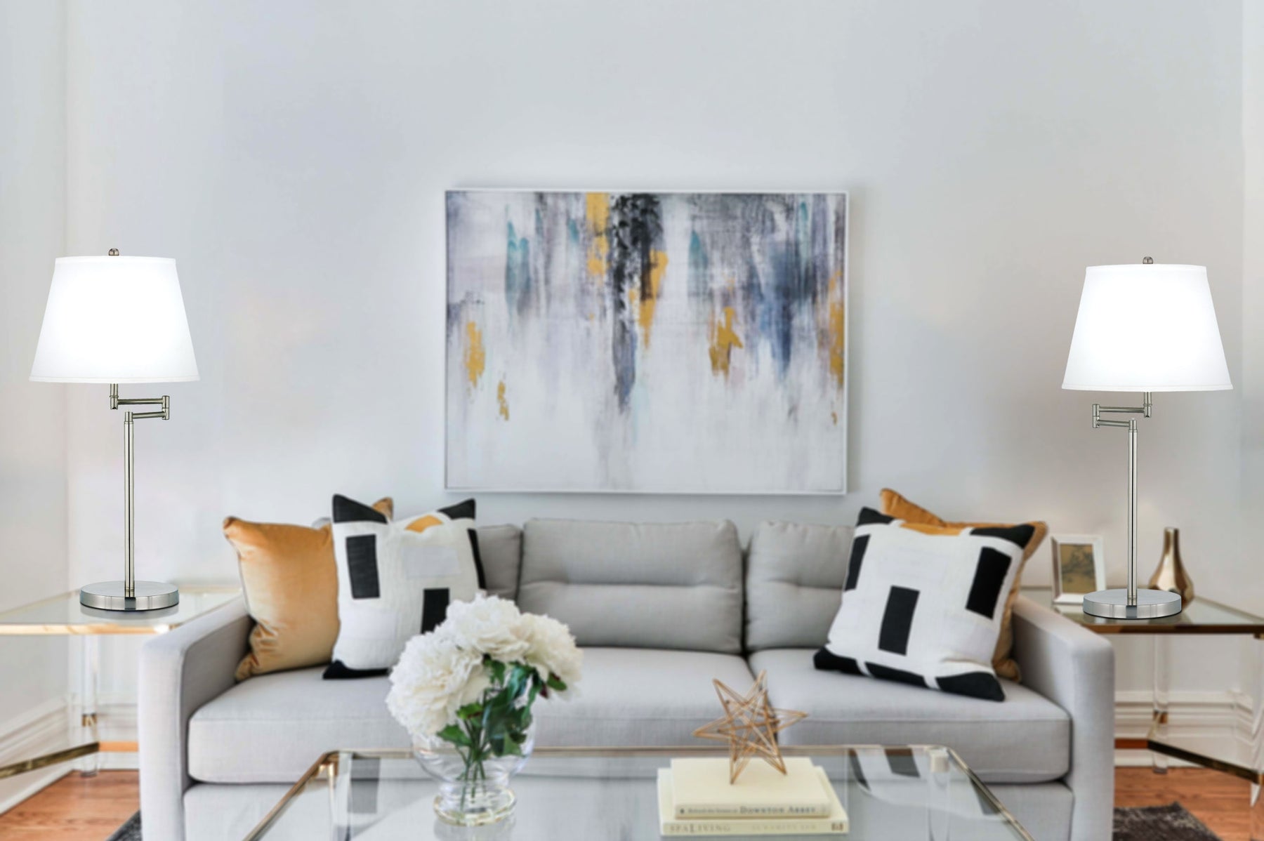 • The swinging arm is adjustable and pivots allowing you to control the positioning of the light source.