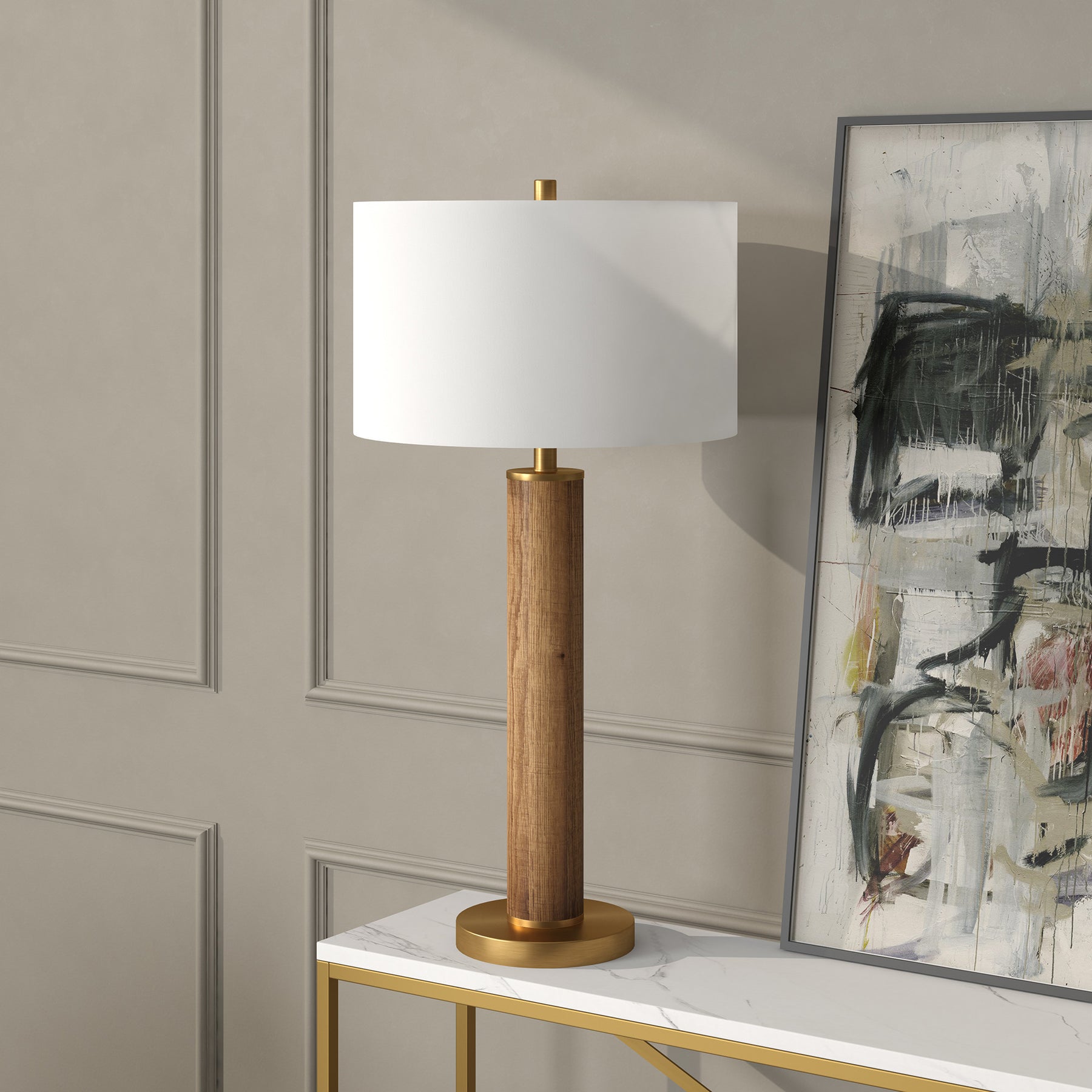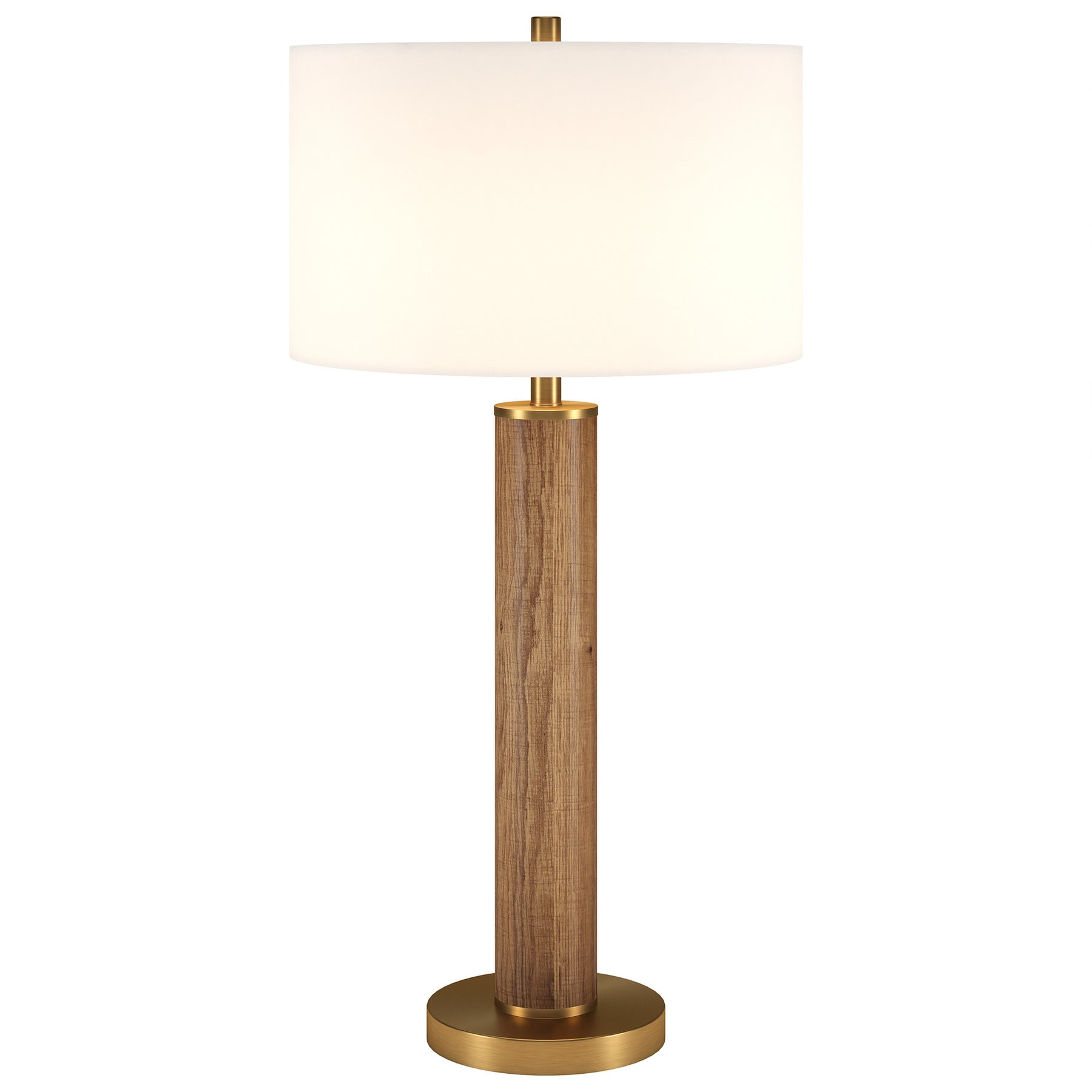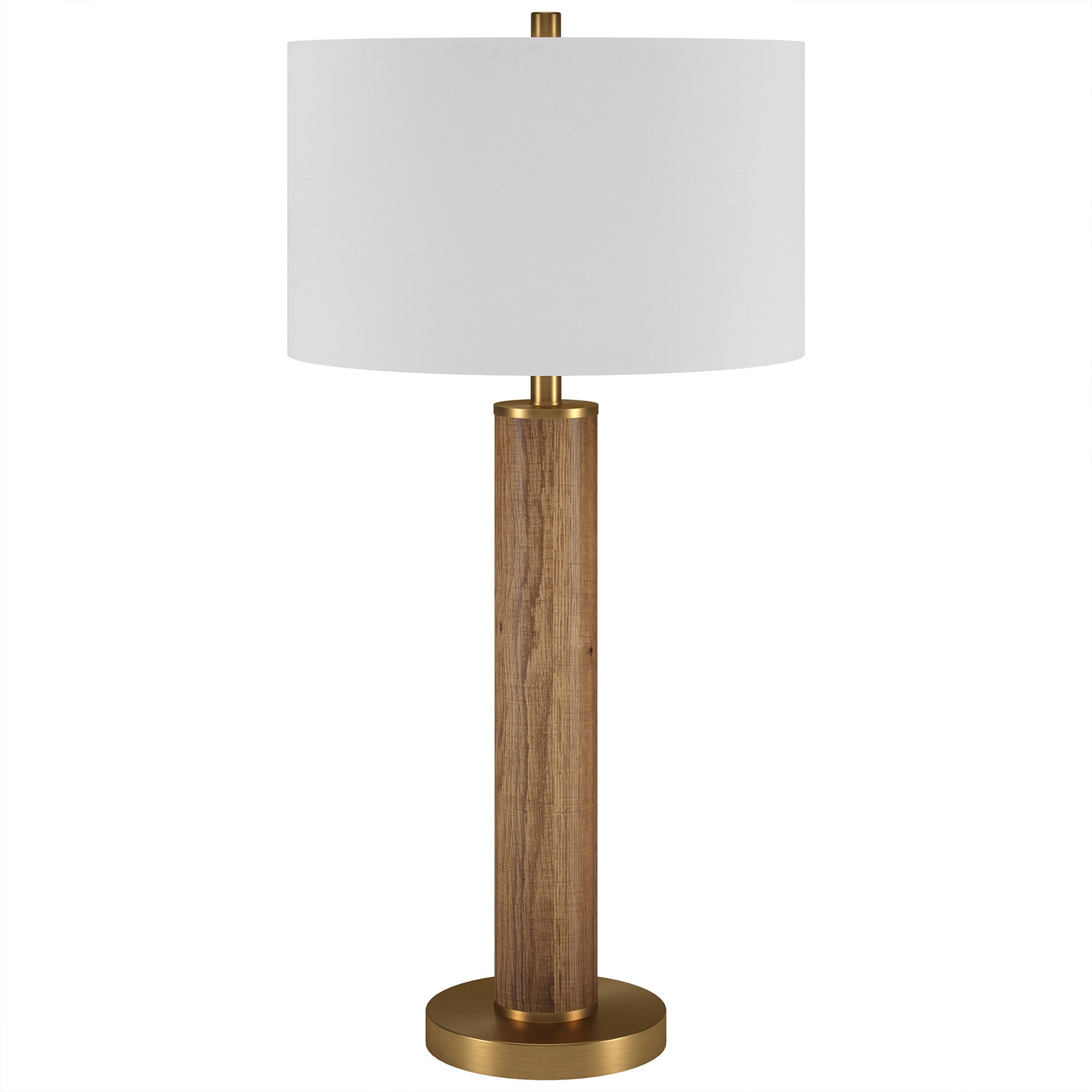 Truly a mix of design and functionality that doesn't compromise on style, this 29-inch gold and brown metal table lamp with white drum shade will be a great addition to your space. A gorgeous gold and brown metal base brings just the right amount of pizzazz to this fabulous lamp. The white shade has a drum shape and is made from fabric. This standard table lamp is designed to provide general lighting to the area. Use this lamp anywhere and elevate the look of the whole space. It is perfect for virtually any decor. 29-inch H x 15-inch W x 15-inch D