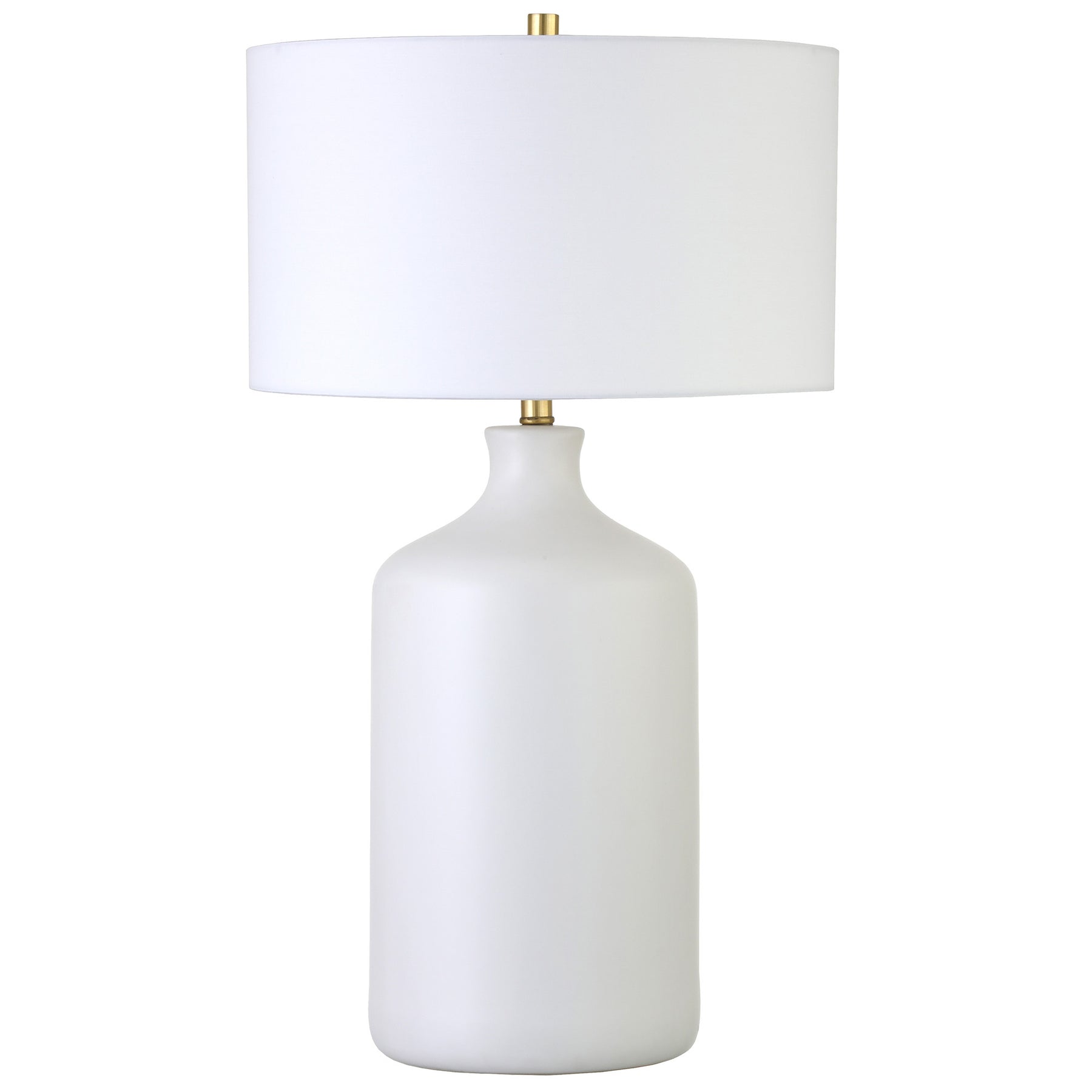 This 29-inch white ceramic table lamp with white drum shade is a great way to add some brightness to any corner of your home. The lamp is made of sturdy ceramic and features a white color. The white drum fabric shade is a great compliment to this lamp. This standard table lamp is designed to provide general lighting to the area. The light that this lamp throws is soft and warm to elevate the look of most any space in your home. The perfect lamp to create just the right natural and soothing light in your space. 29-inch H x 16-inch W x 16-inch D