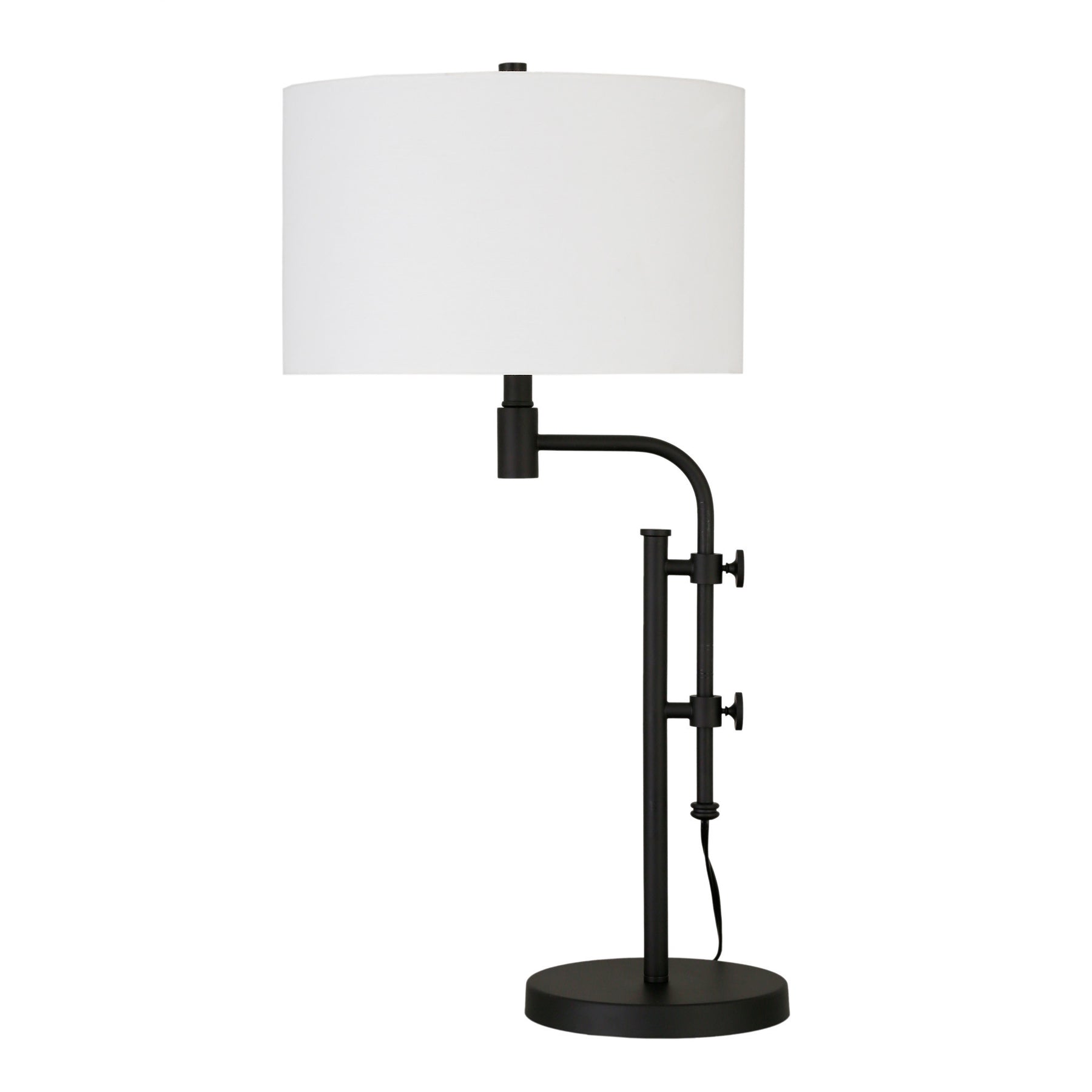 Bring of level of elegance and freshness to your space with this high quality 32-inch black metal adjustable table lamp with white drum shade. The lamp is made of sturdy metal and features a black color. The white drum fabric shade is a great compliment to this lamp. This standard table lamp is designed to provide general lighting to the area. High quality design makes this a great lamp for not only lighting, but accenting a room with style. It is perfect for virtually any decor. 32-inch H x 18-inch W x 14-inch D