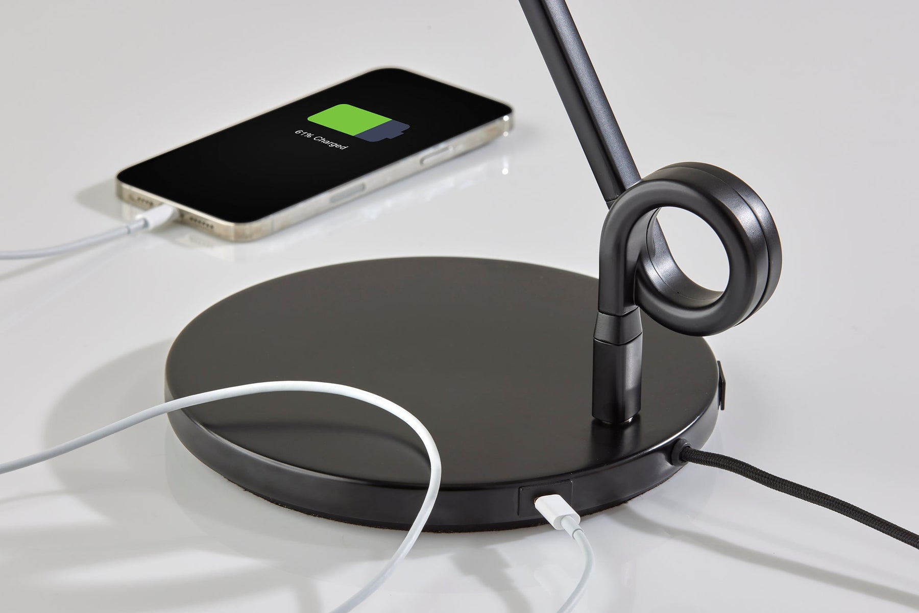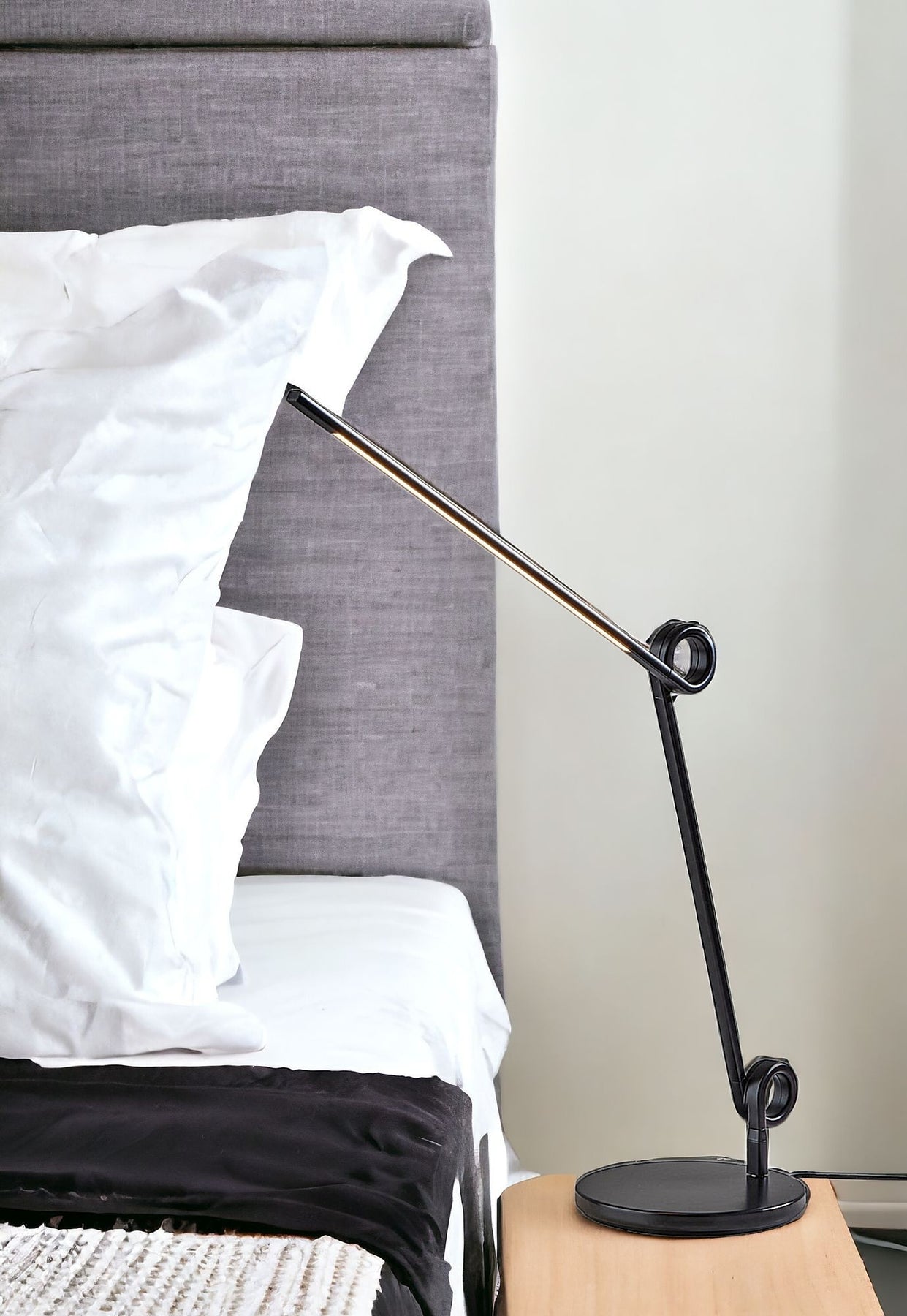 Bring of level of elegance and freshness to your space with this high quality 35-inch black metal round desk led usb table lamp. A gorgeous black metal base brings just the right amount of pizzazz to this fabulous lamp. This desk lamp provides 'task lighting' that will illuminate your working area for reading or writing. Integrated led technology is energy efficient and gives this lamp a cool and modern look the light that this lamp throws is soft and warm to elevate the look of most any space in your home. Bring some lite and good vibes into your space with this updated and stylishly designed lamp. 35-inch H x 7.875-inch W x 21.25-inch D