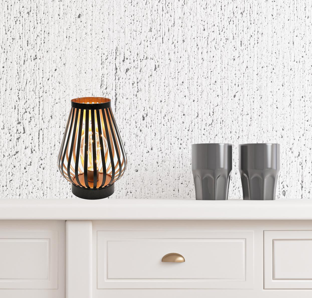 Embrace the good life with this hard working and stylish 9-inch black metal bedside LED table lamp with brown and black novelty shade. The lamp is made of sturdy metal and features a black color. Includes a brown and black metal, novelty shaped shade, making this a fashionable piece that will complement most any interior. Bedside table lamps help to add a soft and cozy glow to your bedroom. Great for evening reading! Integrated LED technology is energy efficient and gives this lamp a cool and modern look High quality design makes this a great lamp for not only lighting, but accenting a room with style. It is perfect for virtually any decor. 8.66-inch H x 6.69-inch W x 6.69-inch D