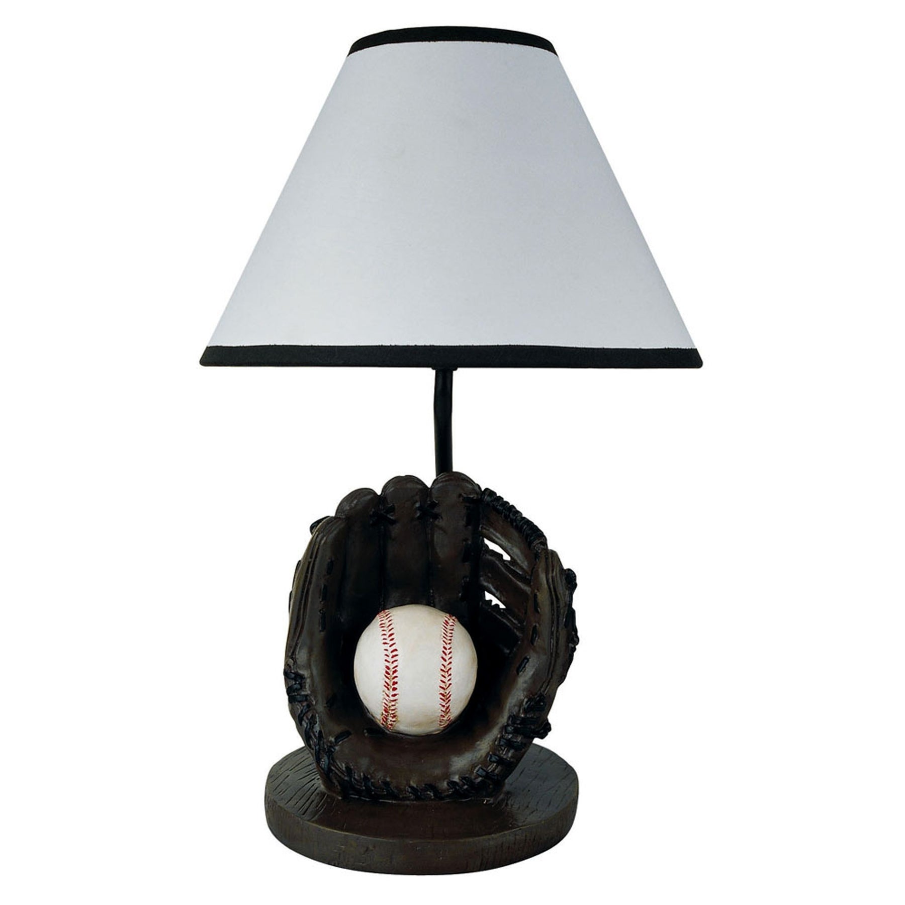 • Features polyresin Baseball and Mitten Base with Linen Shade.