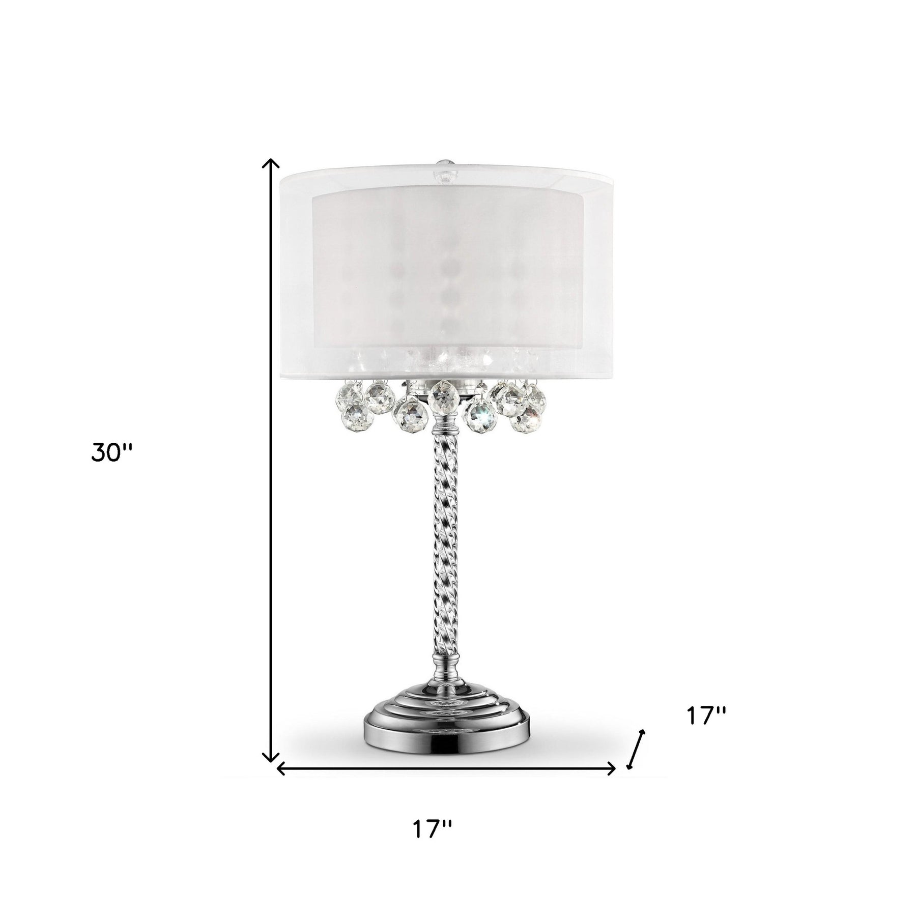 Add a dash of elegance and luxury to your space with this Chic Silver Tall Table Lamp with Crystal Accents and Silver Shade. This beautiful table lamp inspired by the luxurious side of life is adorned with crystals and a silver chrome finish. It is the perfect lighting feature for any interior space in need of a contemporary and luxurious light. The modern piece is expertly finished off with a silvery shade, creating a chic and innovative effect over the lightbulb. 30" x 17" x 17"