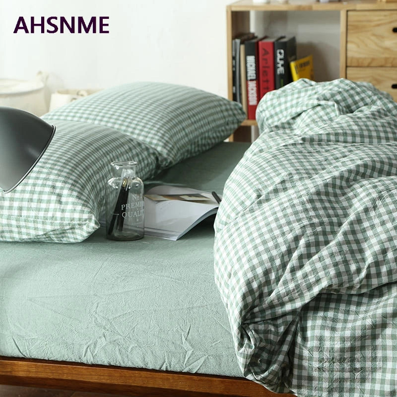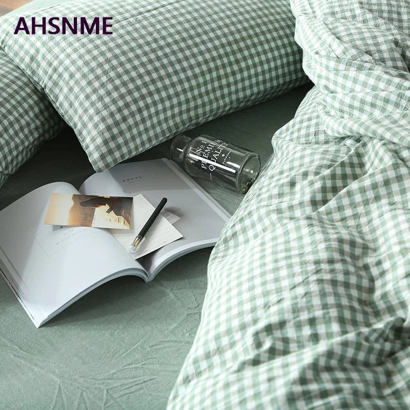 Enhance your bedroom with the AHSNME 100% Cotton Nevresim Takımları. Crafted from pure cotton, this bedding set offers a super-soft touch, perfect for a restful night’s sleep during the summer months. The light green small plaid pattern brings a touch of elegance and freshness to your bedroom decor. This set includes a duvet cover and comforter, designed to provide both style and comfort while keeping you cool and cozy.