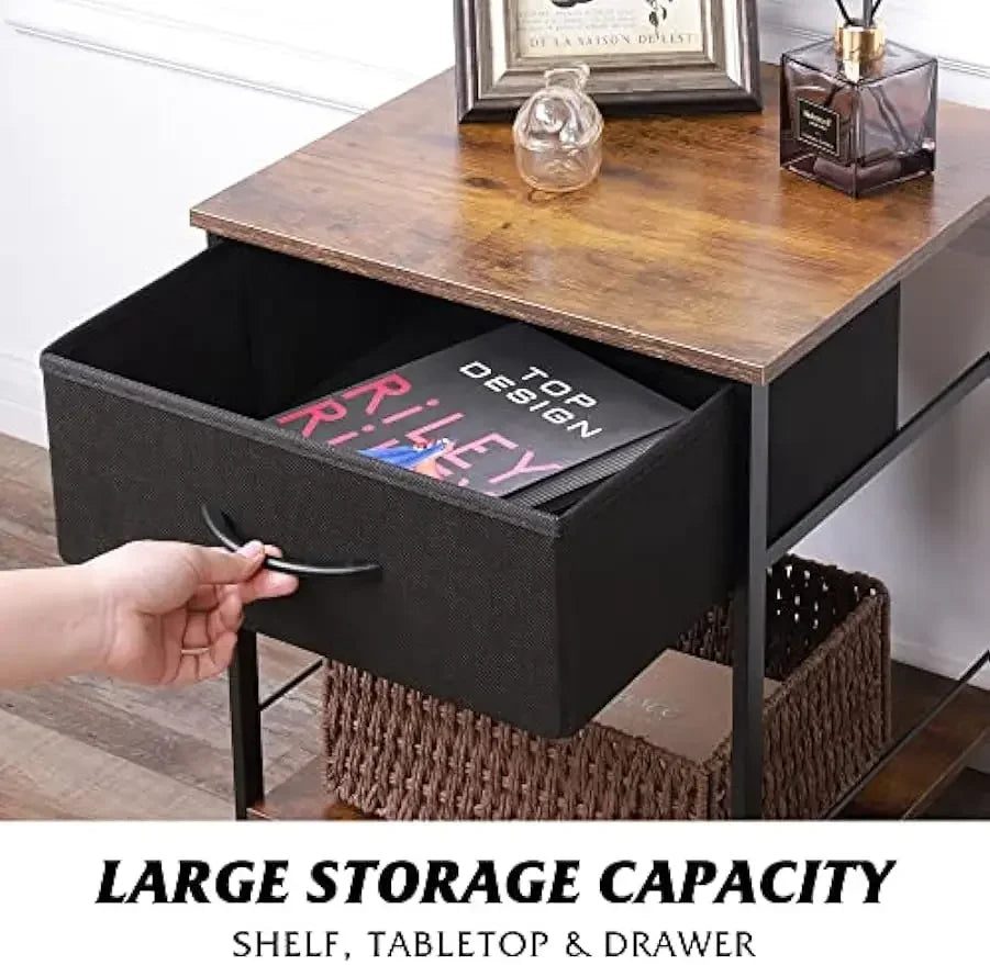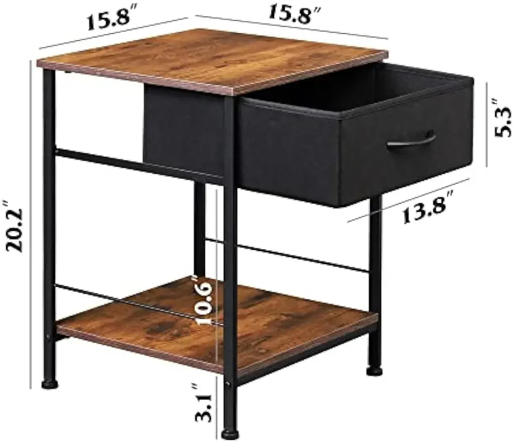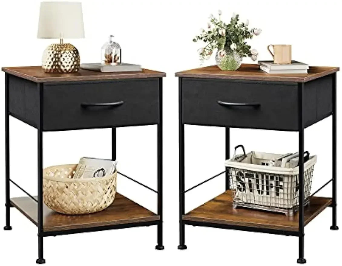 Upgrade your bedroom with this Nightstand Set of 2, featuring a sleek and functional design. Each end table includes a fabric storage drawer and an open wood shelf, perfect for keeping essentials organized. The sturdy steel frame ensures durability and a modern touch. Ideal for bedside use, this set combines style with practicality, enhancing your bedroom's decor while offering ample storage space.
