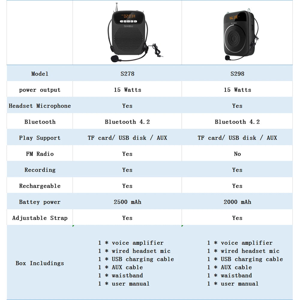 - 1 x SHIDU 15W Portable Voice Amplifier