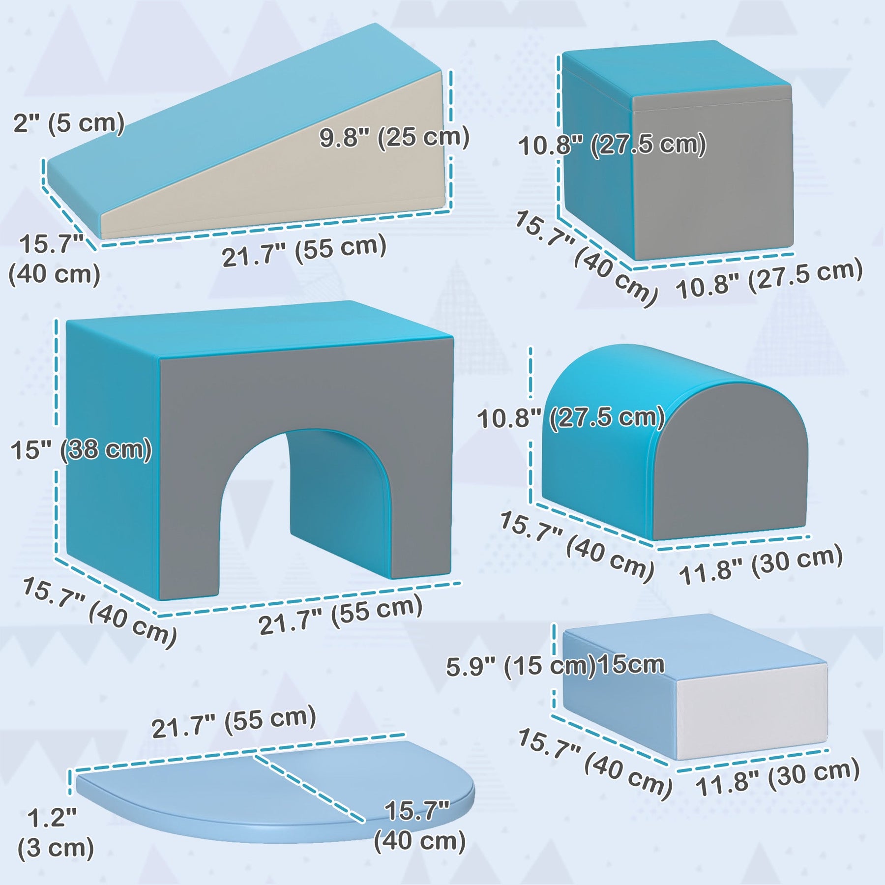 Qaba 7 Piece Indoor Soft Play for Toddlers Climb and Crawl - Blue and Grey