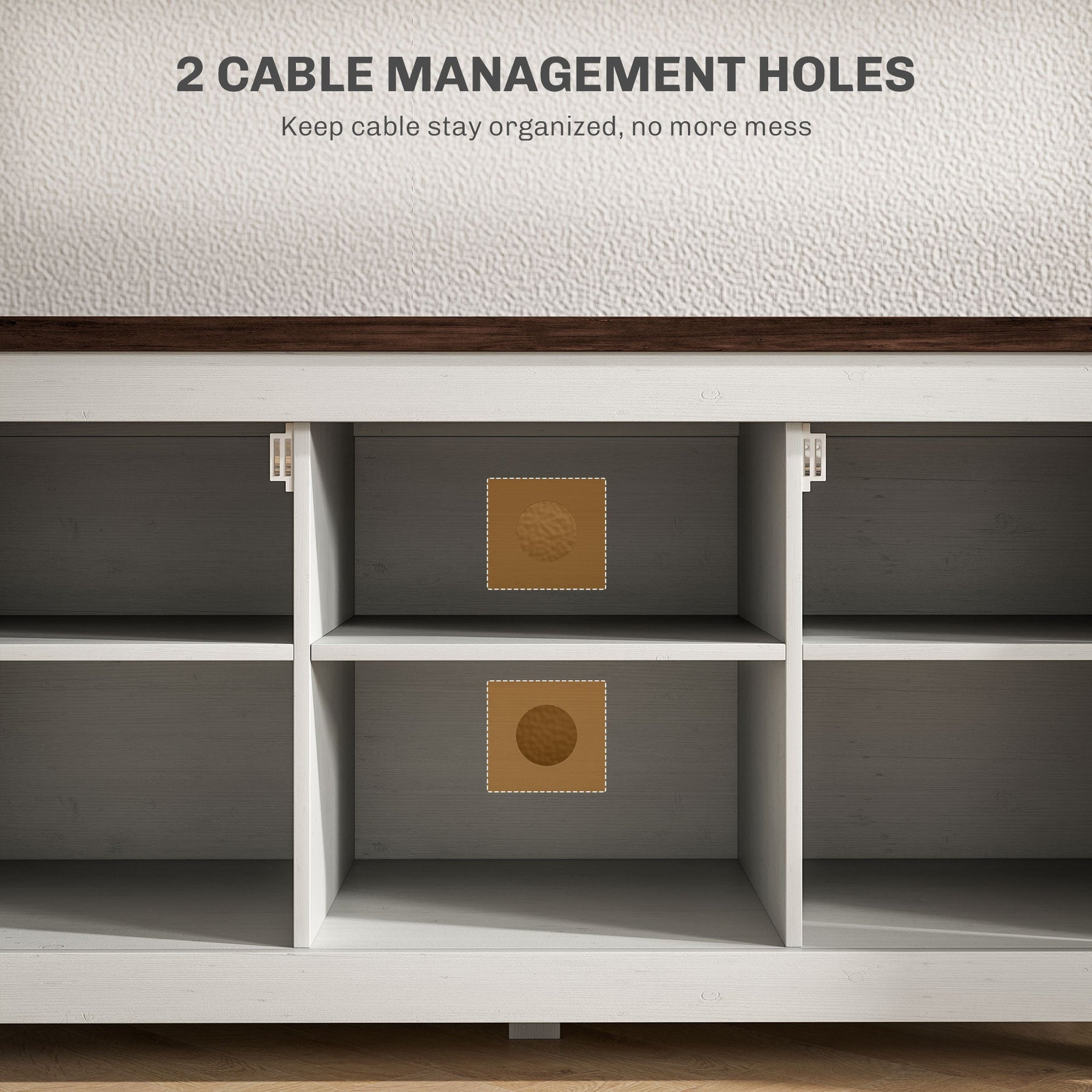 • Convenient cable management with 2 cable holes and a backboard for a neat setup