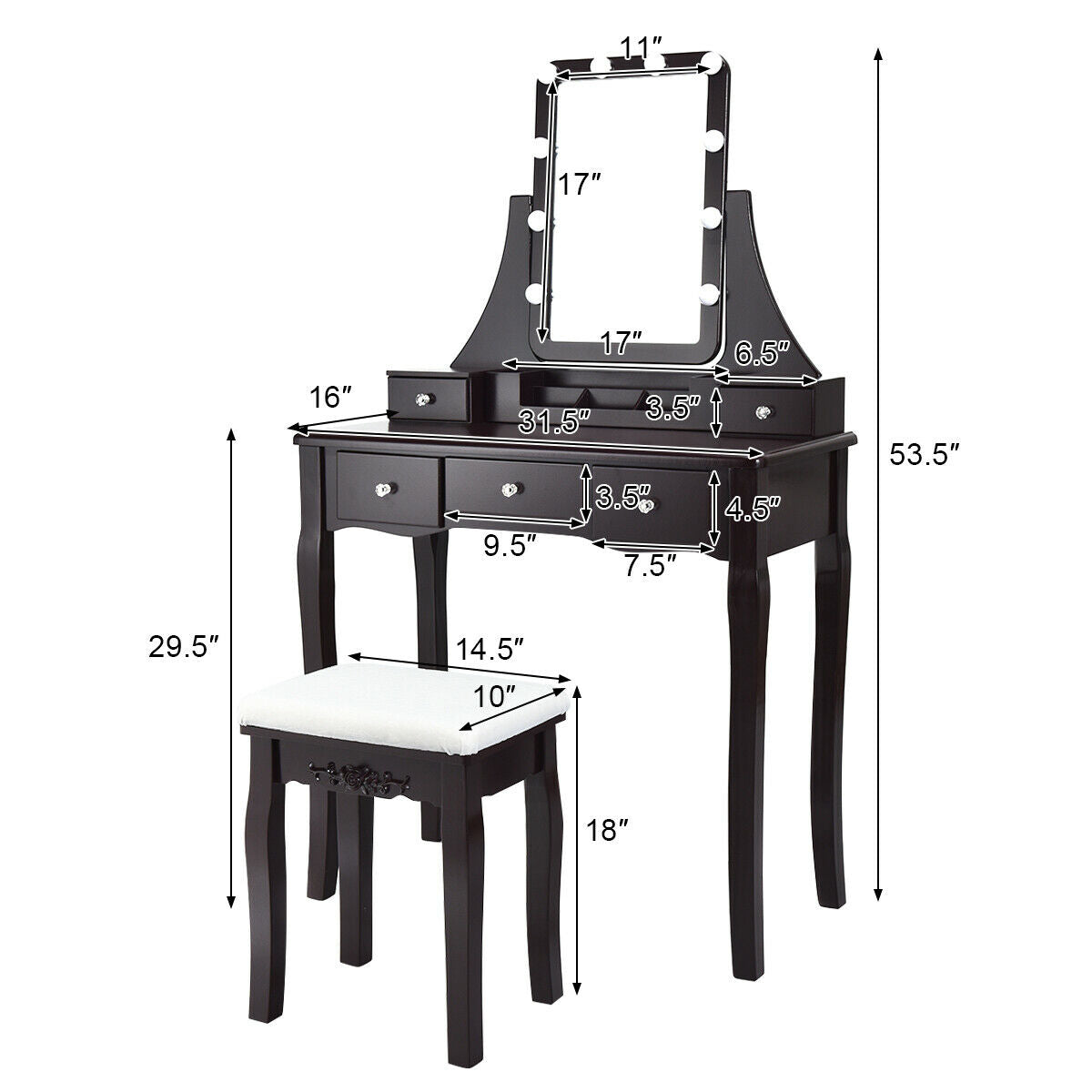 Enhance your beauty routine with this stunning Brown Vanity Set with LED Mirror. Featuring adjustable LED lighting, ample storage, and a modern design, this vanity set is perfect for bedrooms, bathrooms, closets, or hallways. Whether you're applying makeup, styling your hair, or organizing your beauty products, this vanity set will meet all your needs in style and comfort.
