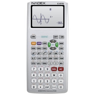 Nadex Coins™ C-270 Scientific Calculator with Black and White Graph Functions, Battery Powered (Silver)
