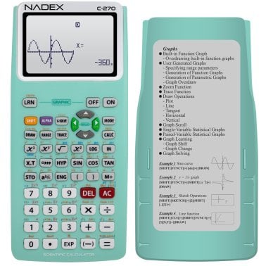 Nadex Coins™ C-270 Scientific Calculator with Black and White Graph Functions, Battery Powered (Green)