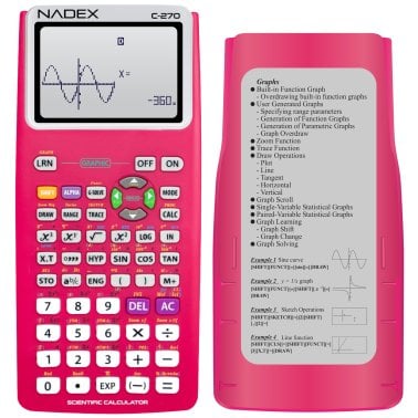 Nadex Coins™ C-270 Scientific Calculator with Black and White Graph Functions, Battery Powered (Pink)