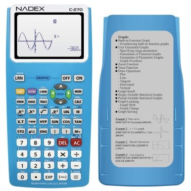 Nadex Coins™ C-270 Scientific Calculator with Black and White Graph Functions, Battery Powered (Blue)