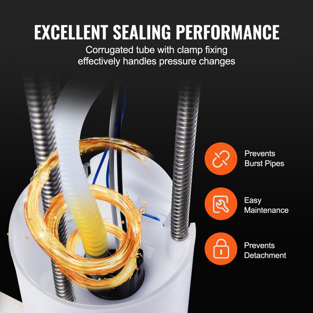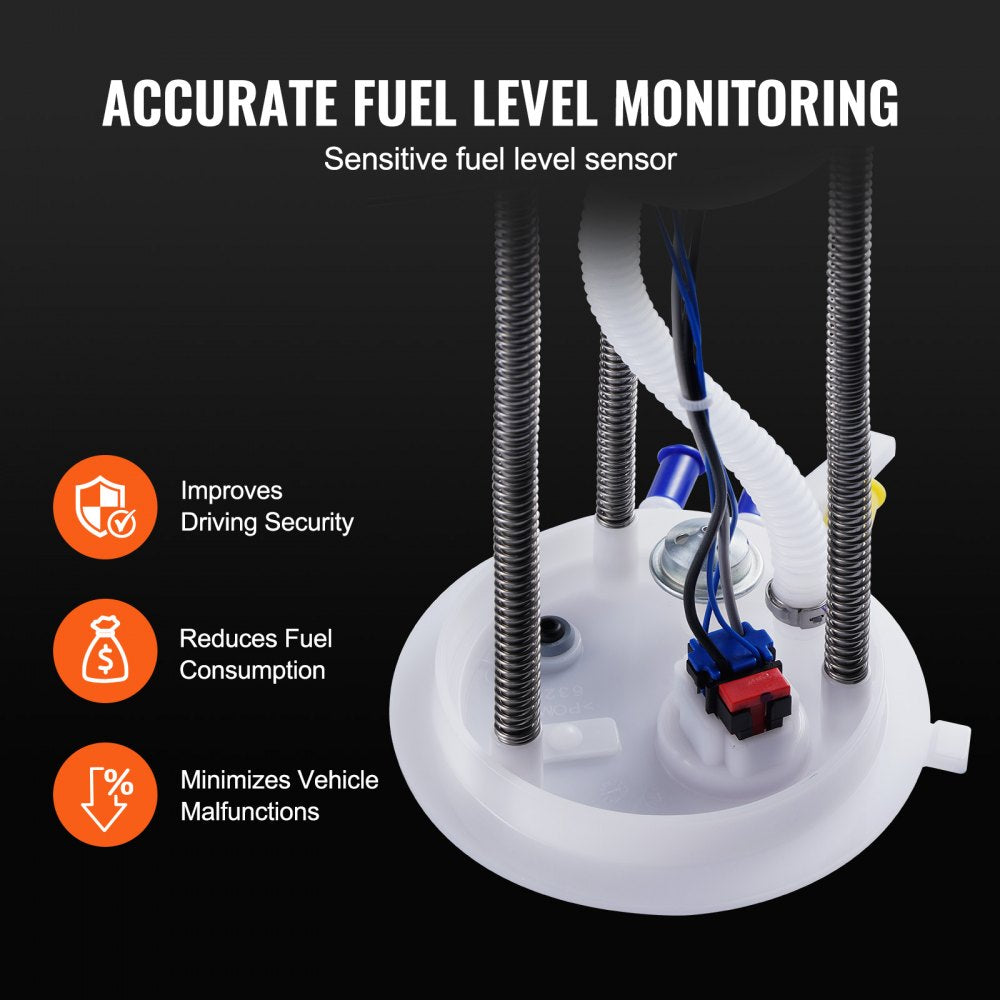The VEVOR Electric Fuel Pump Module Assembly is designed for optimal performance in Chevrolet Silverado and GMC Sierra models. Engineered to meet OE (Original Equipment) standards, this fuel pump module offers high efficiency and stability, reducing fuel consumption while ensuring a perfect fit. It minimizes breakdowns and maximizes reliability, making it a great replacement part for your vehicle. With a DC 12V power supply and efficient design, this fuel pump module ensures smooth fuel delivery and enhanced engine performance.