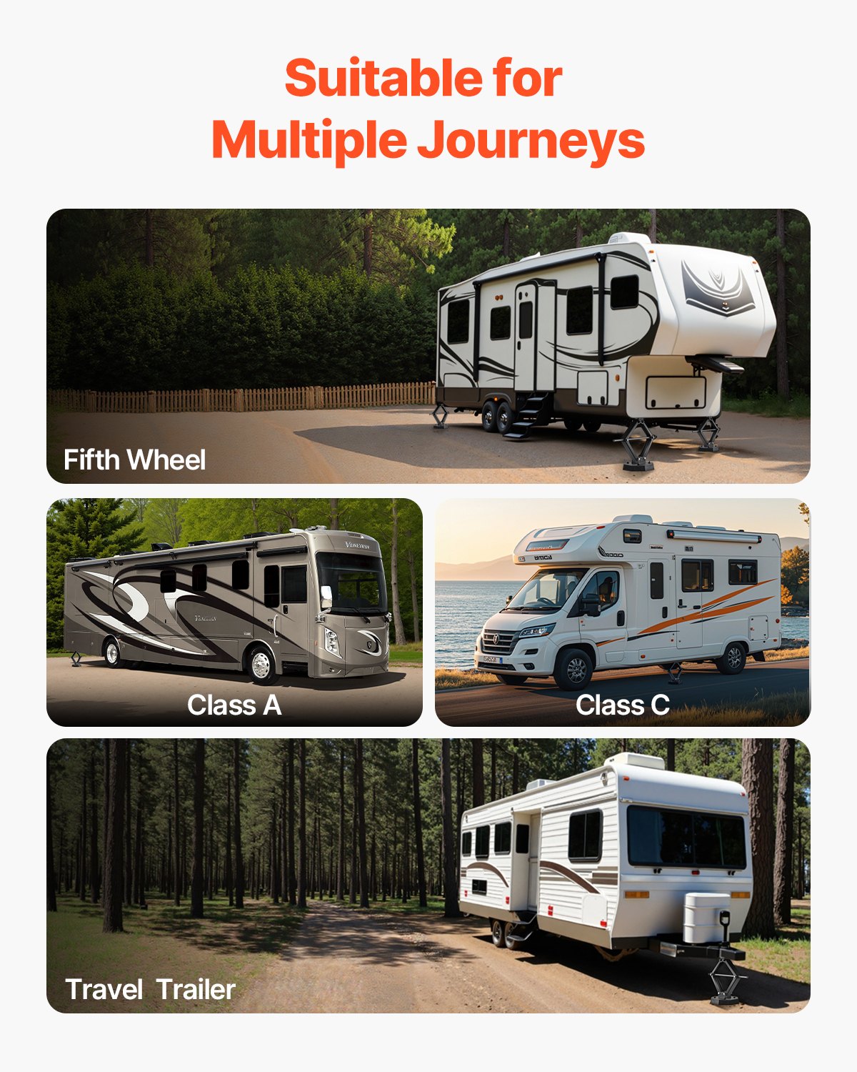 Versatile Accessories: Compatible with scissor jacks and a variety of leveling systems, enhancing flexibility.