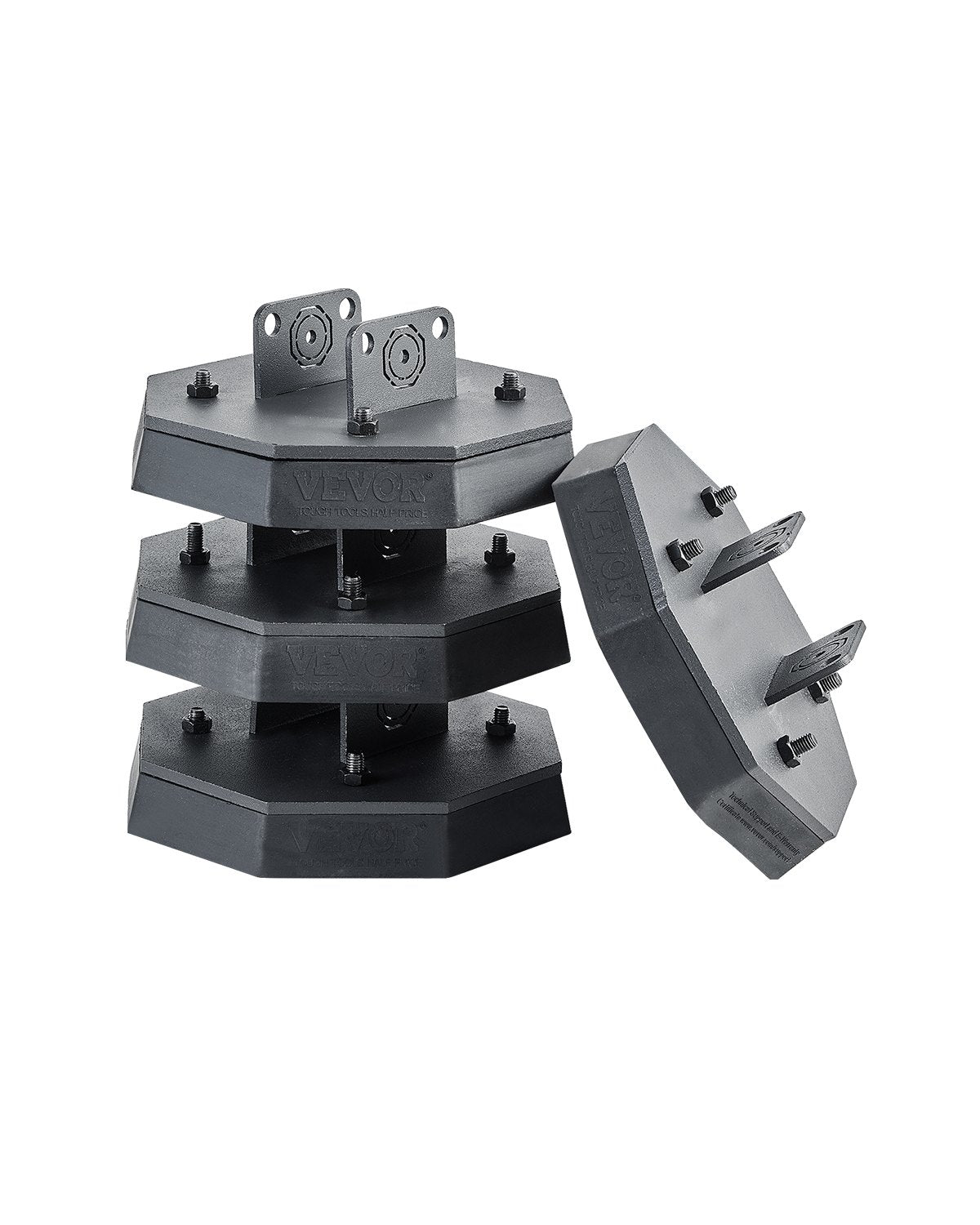 The VEVOR RV Leveling Pads (Set of 4) are designed to provide stability, protection, and durability for your RV, trailer, or scissor jacks. Each pad supports up to 5,000 lbs, ensuring a secure and reliable foundation for your vehicle. Made from heavy-duty rubber, these pads offer a non-slip surface to prevent shifting during use. The no-groove structure provides a flat, stable platform, making it compatible with a wide range of jack bases. The pads feature a 1.38-inch (35 mm) support height, ideal for leveling your vehicle with ease. With a simple 4-step installation process, these pads are quick and easy to set up, perfect for campers, travelers, and mobile homeowners. Compact yet sturdy, they are a must-have addition to your RV gear for safe and hassle-free leveling.