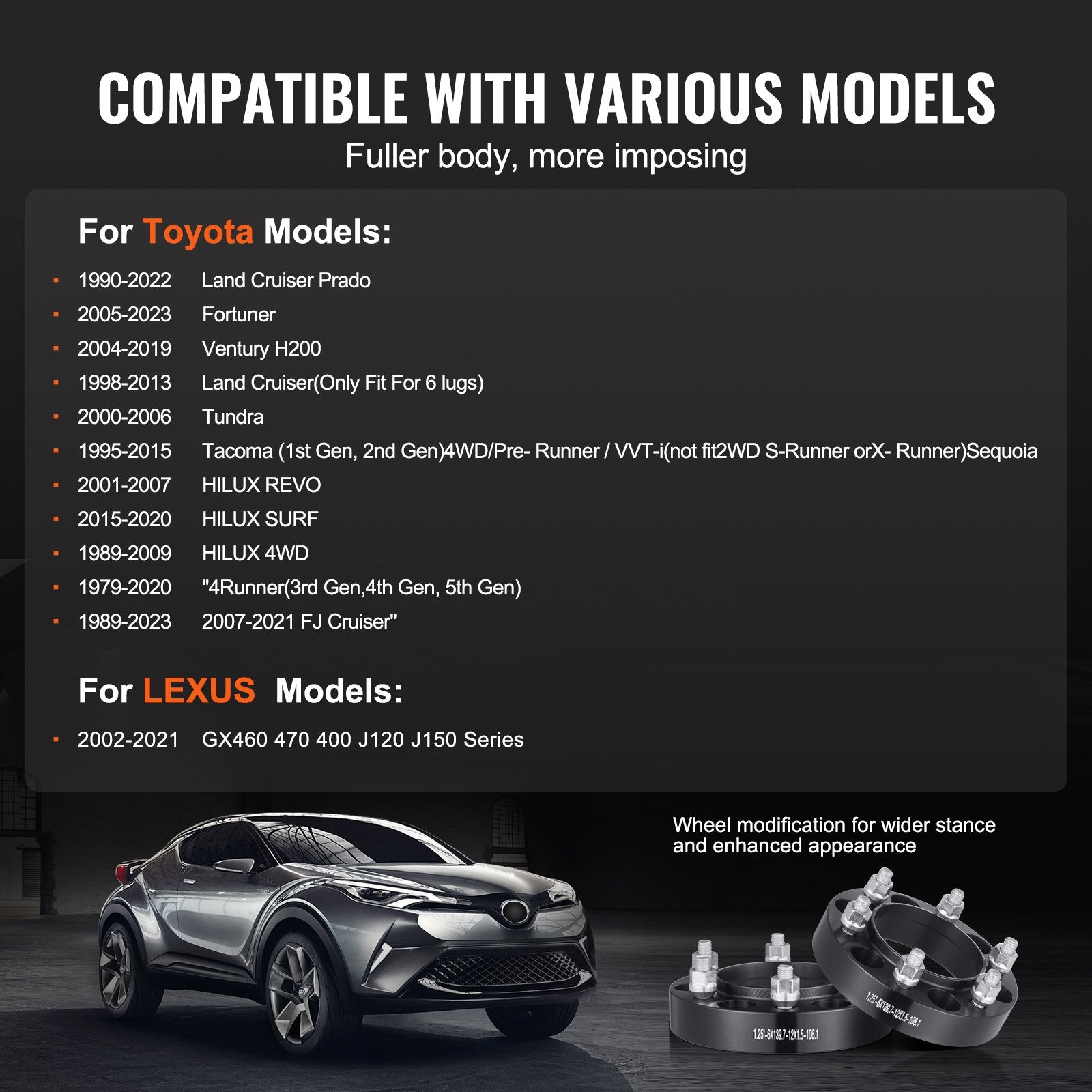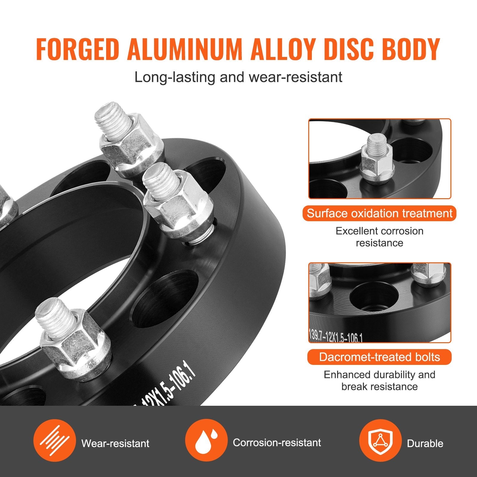 Upgrade your vehicle’s handling and stance with the VEVOR 1.25" Wheel Spacers. Designed with precision and built from high-strength aluminum alloy, these 6x5.5" (6-lug) spacers enhance stability, allow for wider tire fitment, and improve cornering performance. With a hub bore of 106.1 mm and Grade 10.9 pre-installed bolts, these spacers are both wear-resistant and highly secure. Compatible with a wide range of trucks and SUVs, they are ideal for off-road or performance applications.